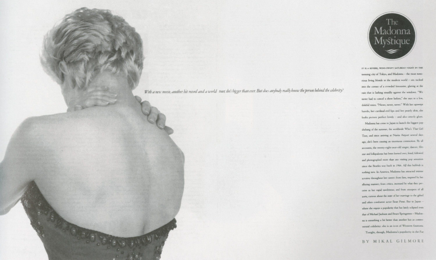 Rolling Stone, Sep. 1987 Contributed by Stephen Coles on Mar 22nd, 2015. Artwork published in September 1987. Source: designarchives.aiga.org AIGA Design Archives. License: All Rights Reserved. Source: designarchives.aiga.org AIGA Design Archives. License: All Rights Reserved. Typefaces More about CochinGet CochinMore about unidentified typeface Formats Magazines/Periodicals (1862) Topics Music (6465) Designers/Agencies Fred Woodward (7) Tagged withRolling Stone magazine (17)magazine covers (1394)Madonna (6)center-aligned text (1962)minimalist (531)magazine interiors (1141) Artwork location United States (10085) New York City (2987) In SetsFOH (juan ogando) (20) 1 Comment on “Rolling Stone, Sep. 1987” Florian Hardwig says: Jul 5th, 2018 11:49 am To answer two recent requests: The Rolling Stone logo doesn’t use a font, but was custom drawn by lettering artist Jim Parkinson. There is a free font that is said to be based on this logo, made by Dennis Ludlow (Sharkshock) in 2001, originally named Rolling Stone and later renamed to Royal Acidbath, but it neither is very close, nor very good. Post a comment Name Email – will not be published Website Your response Submit Comment More Cochin in use Serge Lutens Bell Jar packaging (c. 1992–)c. 1992unknownContributed by André Gooren Microcrafts2011Katie HatzContributed by Stephen Coles Art – Goût – Beauté magazine No. 100, Christmas 19281928unknownContributed by Matthijs Sluiter Staff Pick Sponsor More in Music Spooky Tooth – Spooky Two album art1969Guy StevensMike SidaPhoto(s) by Michael Studt on Flickr. The Ray Charles Singers – Something Wonderful album art1961Charles E. MurphyPhoto(s) by Bart Solenthaler on Flickr. Ostgut Ton2017Annse BenchContributed by Annse Bench Latto × Mariah Carey ft. DJ Khaled – “Big Energy Remix” single cover2022unknownContributed by Javi Gonzalez More in Magazines/Periodicals Plain Text 12025Lucas DescroixBenjamin DumondContributed by Plain Form Staff Pick Prostitution et Société magazine, no. 1622008Paule Palacios-DalensContributed by PampaType Team Staff Pick Odysée magazinec. 2018Bérangère PortellaAtelier 1234567890Contributed by Blaze Type Better Homes and Gardens, “Christmas Ideas 1967”1967unknownPhoto(s) by Heather David on Flickr. More Fonts In Use Civic City Cahier series2010Studio GörlichMilieu GrotesqueLast Minute PanicContributed by Florian Hardwig Staff Pick Hacia aquí, hacia allá, hacia casa exhibition posterc. 2024Clara SanchoPascal ZoghbiChristian GranadosContributed by 29LT Type Design Company Staff Pick Joan Miró: Women, Birds, Stars2022Good QuestionContributed by Lee noheul Staff Pick The Dog Wellness Centre2018Studio WorkContributed by STUDIO WORK Staff Pick