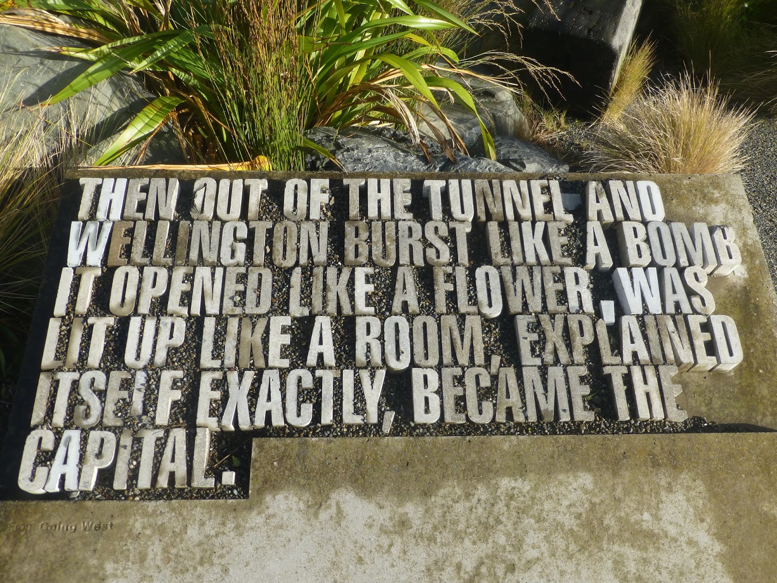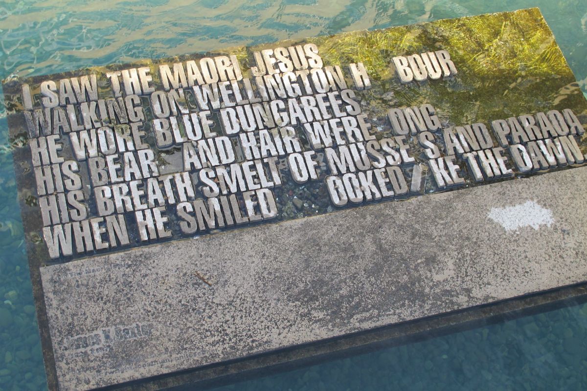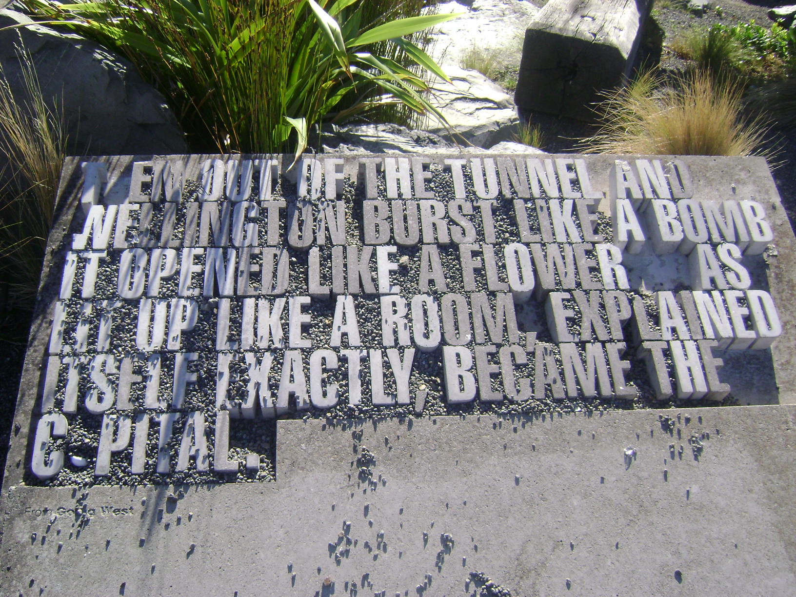 The Wellington Writers Walk is set in one of the world’s loveliest urban land-and-seascapes. It combines a stroll along Wellington’s waterfront with the discovery of sculptural quotations from some of New Zealand’s best known writers.