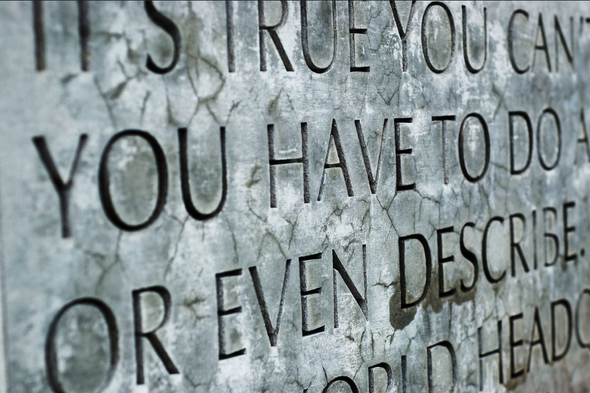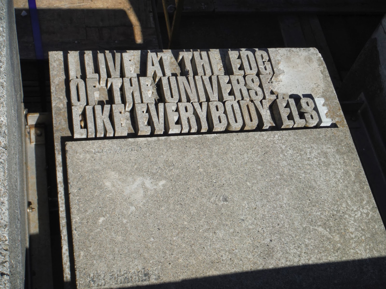 Like a series of intriguing pronouncements – often in surprising and unexpected places – the quotes take the form of contemporary concrete plaques and inlaid metal text on wooden ‘benchmarks’.