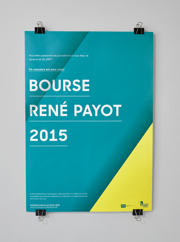 Bourse René Payot 2015 Contributed by Franck Doussot on Apr 21st, 2015. Artwork published in 2015. Source: www.solidesign.ch Photo: Franck Doussot. © Solid | Graphic Design. License: All Rights Reserved. Poster for the RTS – Radio Télévision Suisse. Bourse René Payot is a competition where young journalists can enter to win a three months internship in a radio station. Source: www.solidesign.ch Photo: Franck Doussot. © Solid | Graphic Design. License: All Rights Reserved. Source: www.solidesign.ch Photo: Franck Doussot. © Solid | Graphic Design. License: All Rights Reserved. Source: www.solidesign.ch Photo: Franck Doussot. © Solid | Graphic Design. License: All Rights Reserved. Source: www.solidesign.ch Photo: Franck Doussot. © Solid | Graphic Design. License: All Rights Reserved. Artwork by Franck Doussot. Typefaces More about Sharp Sans Display No. 1Get Sharp Sans Display No. 1 Formats Posters/Flyers (5692) Topics Other (257) Designers/Agencies Solid | Graphic Design (4) Tagged withcompetitions (70)journalism (67)radio stations (42)reversed type (3333)Bourse René Payot (2) Artwork location Switzerland (1108) In Setssan serif (Jihyun Sung) (5) Post a comment Name Email – will not be published Website Your response Submit Comment More Sharp Sans Display No. 1 in use The Tonight Show Starring Jimmy Fallon (NBC)2014PentagramEmily ObermanDeva PardueContributed by Garrison Martin Staff Pick Olapic identity and website (2016)2016Brendan MahonyContributed by Stephen Coles I Came All This Way to Meet You by Jami Attenberg2022Elizabeth YaffeContributed by XYZ Type Staff Pick Sponsor More in Other Zenpen website2024EnsageContributed by Zlatko Najdenovski Wangen am See – September und Oktober 1940 by Anne Overlackc. 2015bemerktContributed by bemerkt Incredible Technologies Labor Day poster2018Incredible TechnologiesContributed by Pablo Balcells From Cliché to Archetype, 1970 first edition1970Hal SiegelContributed by Nick Sherman More in Posters/Flyers A Future Together by Wim Wenders and Salvatore Ferragamo2021MA+CreativeFerragamoContributed by Swiss Typefaces KD—Lounge Season 212024KD—LoungeContributed by Margot Lévêque Typefaces Émergence graduation website2020Jérémie DupuisStéfanie SimardFélix Richer-BeaulieuContributed by Jérémie Dupuis Karneval Düsseldorf ’73 posterc. 1973Kämmerling & Feser WerbungContributed by Florian Hardwig More Fonts In Use Le Journal de La Confluence Nº22012Bureau 205Contributed by Editions Deux Cent Cinq Staff Pick Sandra Valencia identity2021Eduarda NietoContributed by Eduarda Nieto Staff Pick Of His Kingdom There Shall Be No End2018Nigel EwanContributed by Nigel Ewan Staff Pick British International Research Institutes2021OnlyContributed by Only Staff Pick