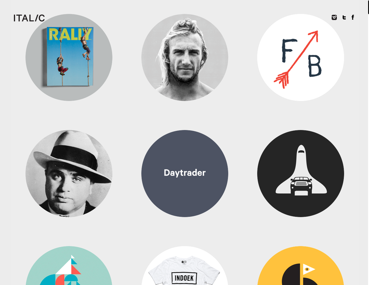Italic Studio Contributed by Drew Powers on Apr 22nd, 2015. Source: italic-studio.com License: All Rights Reserved. Source: italic-studio.com License: All Rights Reserved. Source: italic-studio.com License: All Rights Reserved. Source: italic-studio.com License: All Rights Reserved. Typefaces More about CalibreGet Calibre Formats Web (5787) Topics Graphic Design (3064) Designers/Agencies Italic Studio (1) Tagged withwordplay (90) Artwork location United States (10191) Los Angeles (581) In SetsID (Guilherme Schmitt) (19)Clean (Nick Hussain) (6) Post a comment Name Email – will not be published Website Your response Submit Comment More Calibre in use Altreconomia2016Luca PitoniTomo TomoContributed by Luca Pitoni Dialogues magazinec. 2023Atlantic Re:thinkDrew CampbellLaura ScofieldContributed by Laura Scofield BIMA brand identity2016OnlyContributed by Only Sponsor More in Graphic Design Great Scott logo and website2020Jed ChisholmContributed by Jed Chisholm Staff Pick 804© booklets2011804©Helge RiederCarsten PrengerContributed by Anna Giedryś Nathan Kirkman website2013Contributed by Webtype MADE Quarterly, Edition Two2013Hunt&Co.Thomas WilliamsContributed by Stephen Coles More in Web Diktgymnasiet website, book, T-shirt and launch campaignc. 2025Konst & TeknikContributed by (Harald) Peter Ström Buku Team website2020Buku TeamContributed by Threedotstype Secretly Publishing2016Tristan Palmer StudioContributed by tristan palmer Parade logo and website2023ParadeContributed by Production Type More Fonts In Use Deliverance (1972) movie posters1972Bill GoldContributed by Stephen Coles Staff Pick Black-Draught / Cardui tape measurec. 1920Photo(s) by Stephen Coles on Flickr. Staff Pick Foday Musa Suso – Kora Music from the Gambia album art1978Ronald ClyneContributed by Florian Hardwig Staff Pick Organisationskomitee für die Spiele der XX. Olympiade München 1972: Richtlinien und Normen für die visuelle Gestaltung1969Otl AicherContributed by Manuel Medina Staff Pick