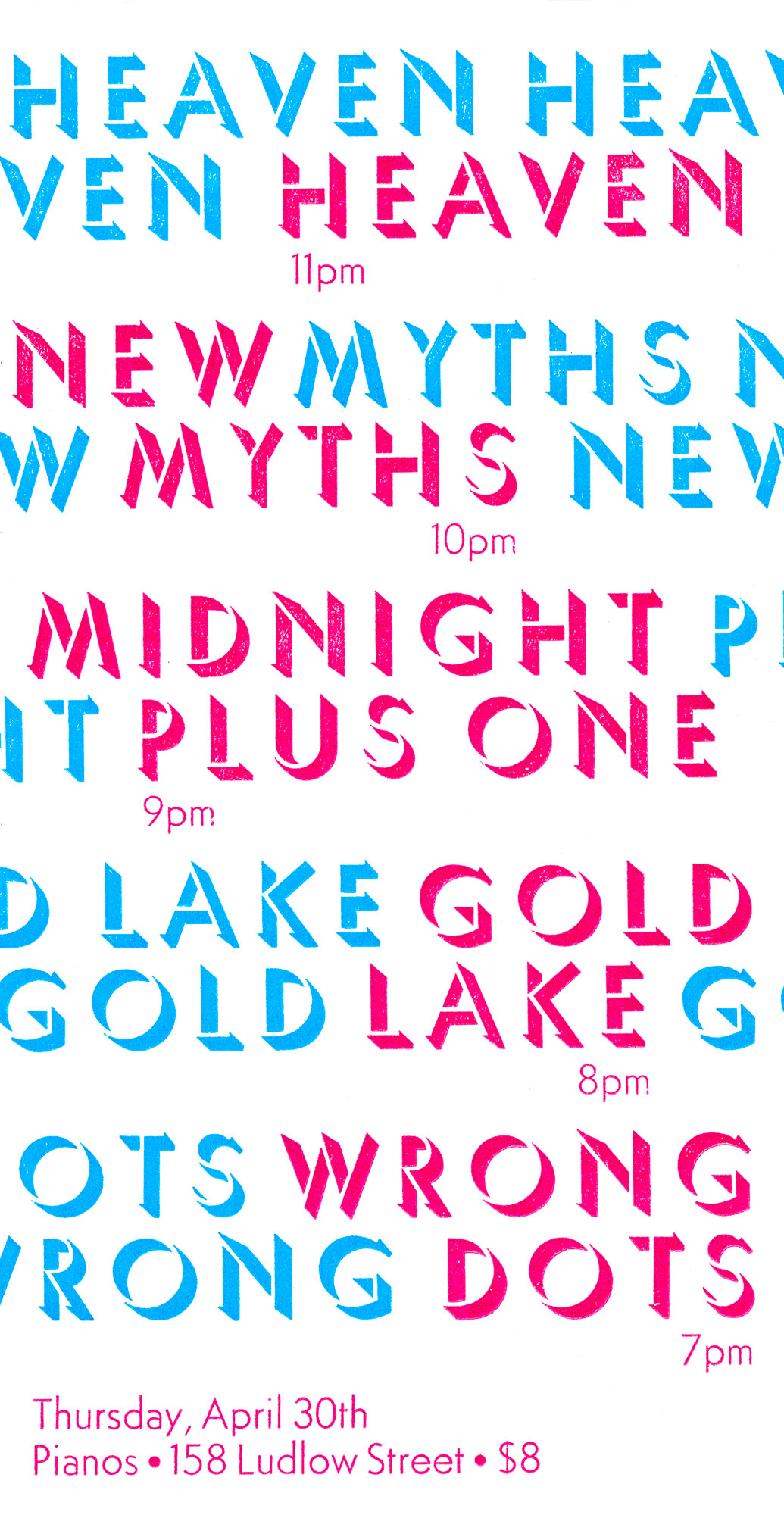 Heaven / New Myths / Midnight Plus One / Gold Lake / Wrong Dots concert poster