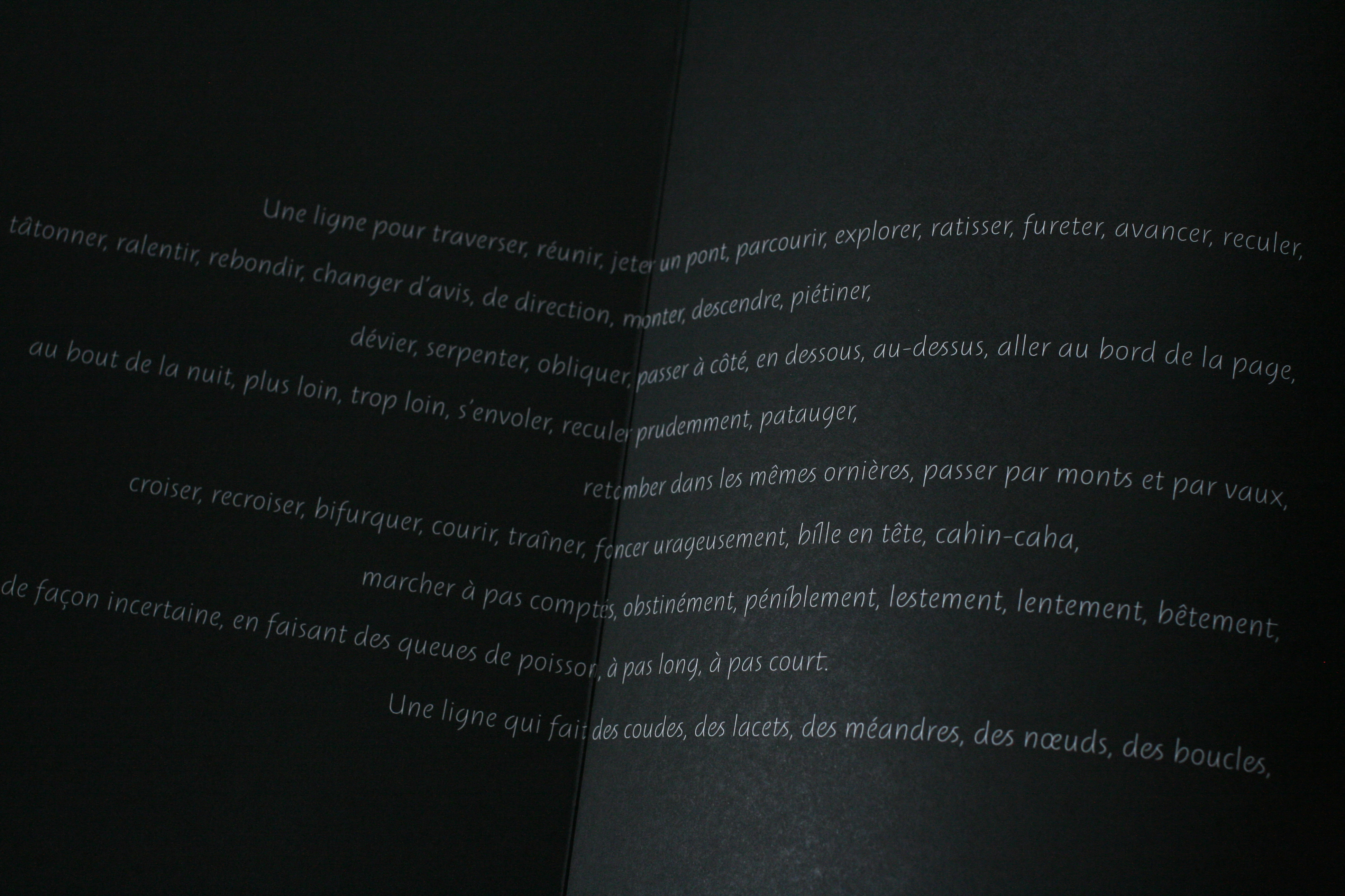 It is freely inspired by the book of the same name by the social anthropologist Tim Ingold. His premise is that “to study both people and things is to study the lines they are made of”. Walking, writing, weaving all belong to this making of lines.