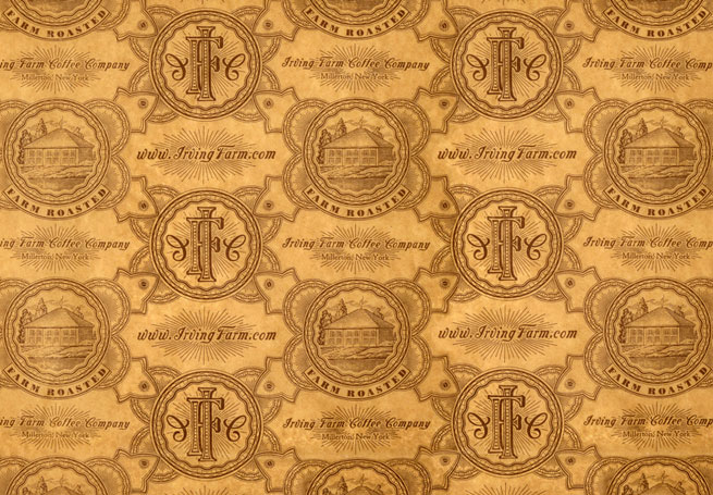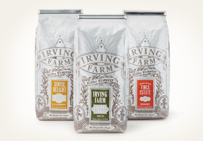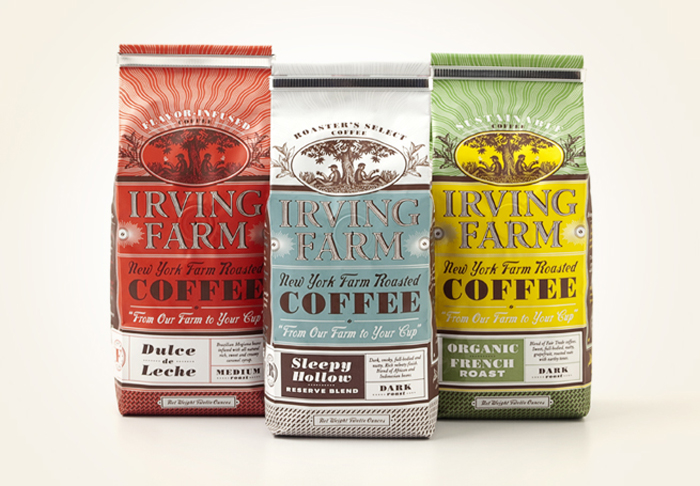Irving Farm green label seems to be based from a Modified Gothic XX Condensed by Tubbs Company.