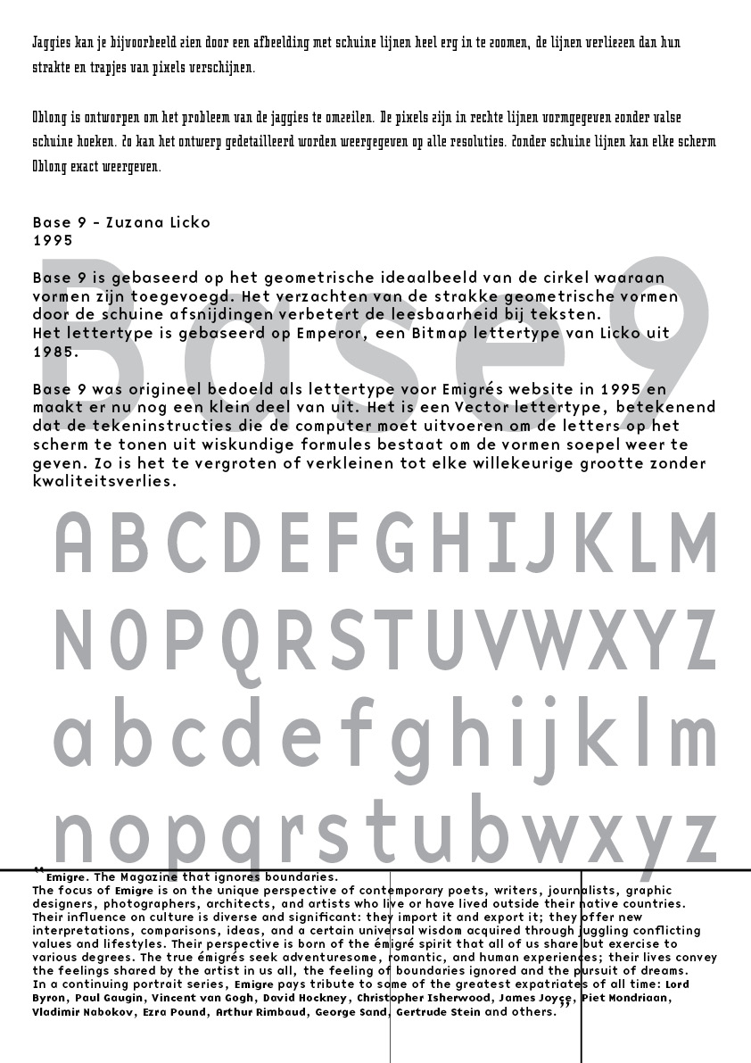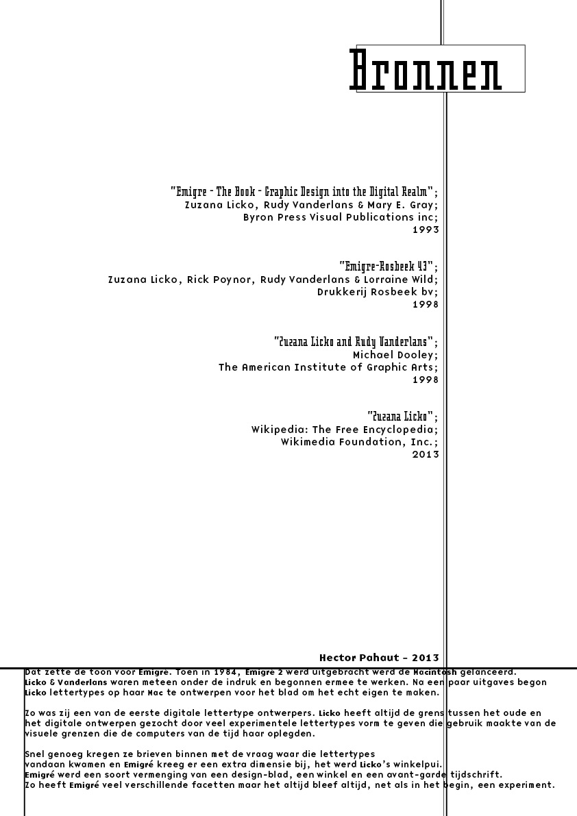 Licko is a Czechoslovakian typeface designer. She is most known for the fonts she designed for her experimental magazine Emigre. The design of the pamphlet was informed by her work there.
