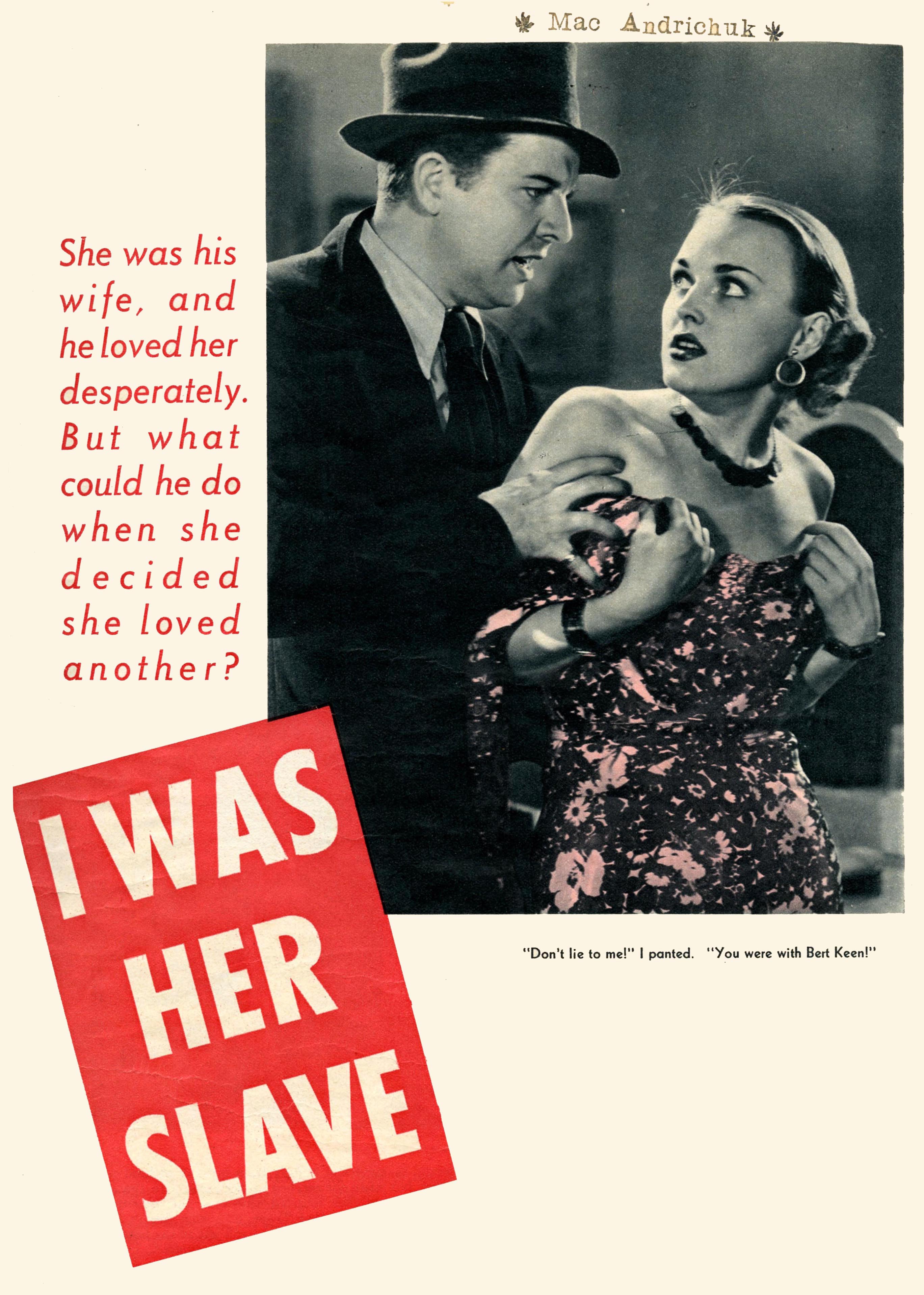 2 Comments on “I Was Her Slave story opener in True Romance, 1938”