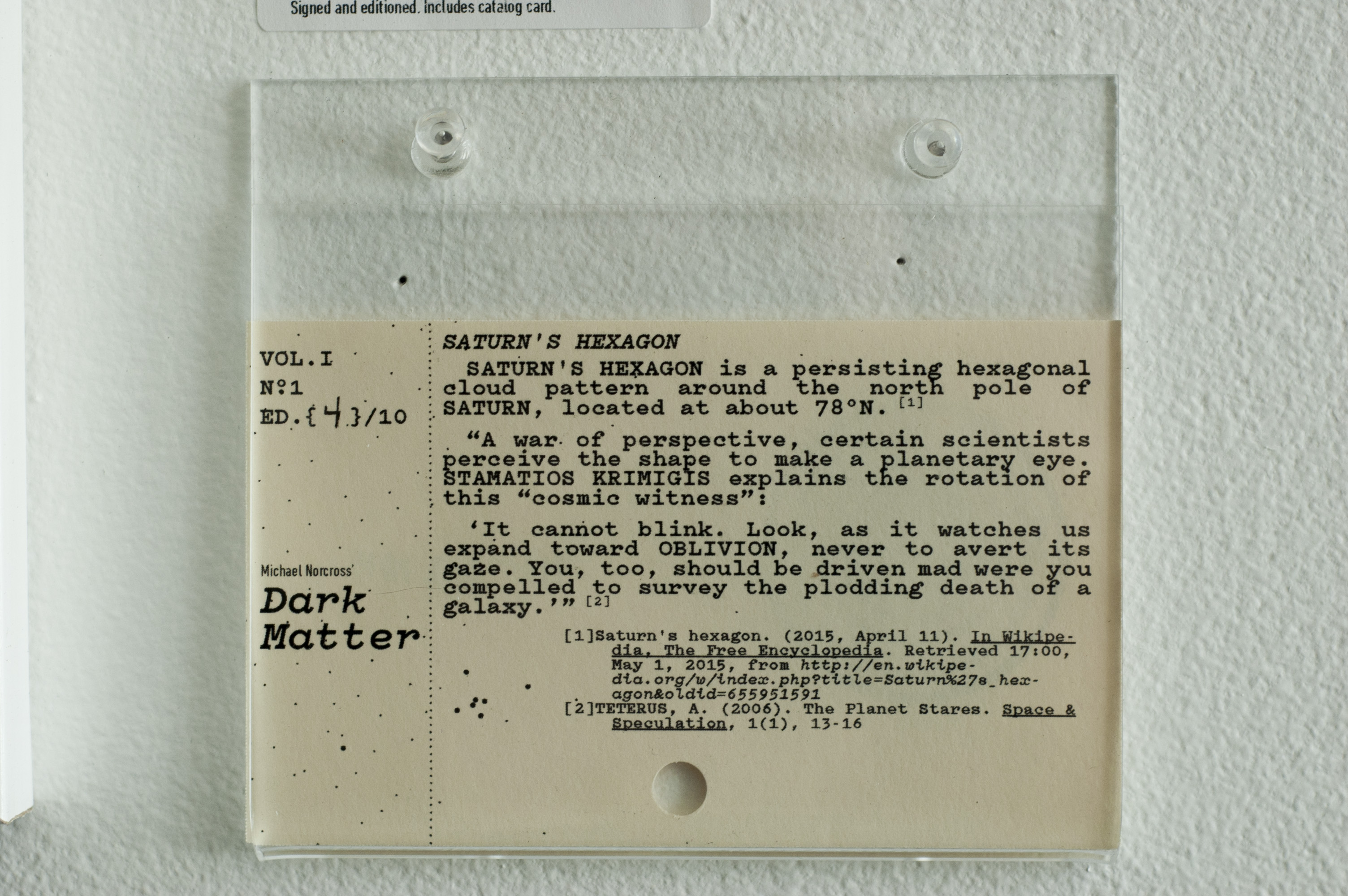 Dark Matter Contributed by M Norcross on Jun 10th, 2015. Artwork published in May 2015. License: All Rights Reserved. Dark Matter illustrates obscure entries from the recesses of Wikipedia, portraying each with a single screen print. All posters are 1 color on 18″×24″ French Paper. License: All Rights Reserved. License: All Rights Reserved. License: All Rights Reserved. Source: michaelnorcross.bigcartel.com Michael Norcross 2015. License: All Rights Reserved. Typefaces More about PitchGet Pitch Formats Art/Illustration (503) Topics Graphic Design (3028) Designers/Agencies Michael Norcross (2) Tagged withscreen printed (347)black and white (2034)posters (1429) Artwork location United States (9985) Philadelphia (68) Post a comment Name Email – will not be published Website Your response Submit Comment More Pitch in use La mousson d’été : 20 ans d’écritures contemporaines2014Hugo RousselStudio PunkatContributed by [deleted] Grain Traders restaurant2015Mark De WinneParable StudioContributed by Production Type Staff Pick Taza Flores2019Studio JulyAWPContributed by AWP Sponsor More in Graphic Design Pentagram Remixed at Ningbo Design Biennial2013PentagramNatasha JenContributed by Kenneth Ormandy Experimental calligraphy workshop, Ljubljana2021Krista LikarContributed by Alja Herlah Aaltoo Festival 20242024Marco Goran RomanoEleonora PicilliAndrea GoffiContributed by Marco Goran Romano Staff Pick Mouscacho2009Antonio SalazarContributed by Darden Studio More in Art/Illustration The Foundry2015Richard WolfströmeContributed by Ramiro Espinoza Staff Pick that man loves1967Corita KentContributed by Stephen Coles Illustration for In Place of Thought by Teju Cole2013Laurie RosenwaldContributed by Stephen Coles American Express “Realise the potential” ad campaign2009Ogilvy & MatherContributed by Fonts In Use Staff More Fonts In Use DAISY by Maxie McCoy2025Raissa PardiniContributed by CLAUDE TYPE Staff Pick Match Artists portfolio website2022GrafikContributed by Nick de Jardine Staff Pick How to look at a painting2011Sarah MaxeyContributed by Indra Kupferschmid Staff Pick Balenciaga: L’elegància del barret2021TodojuntoEspai eAnna Alcubierre RocaContributed by Daniel McQueen (TDF) Staff Pick