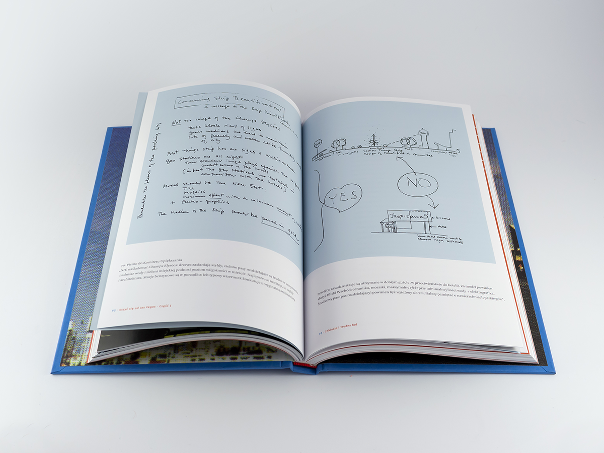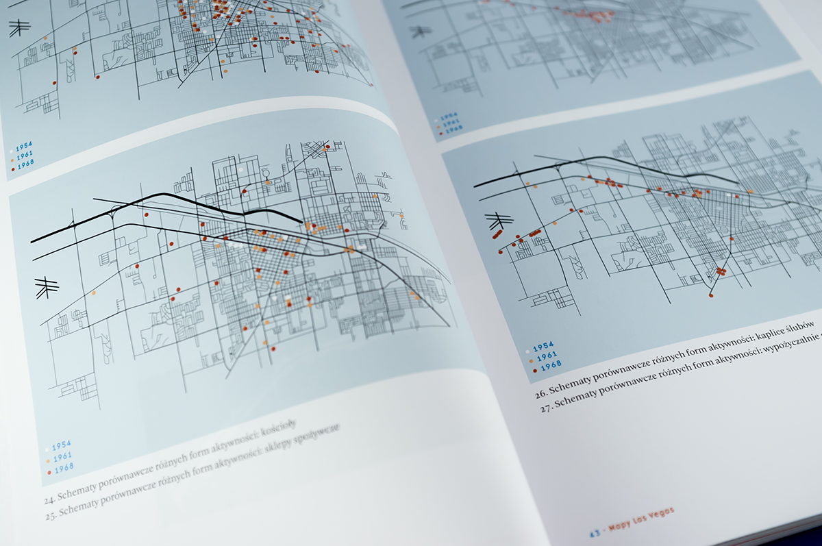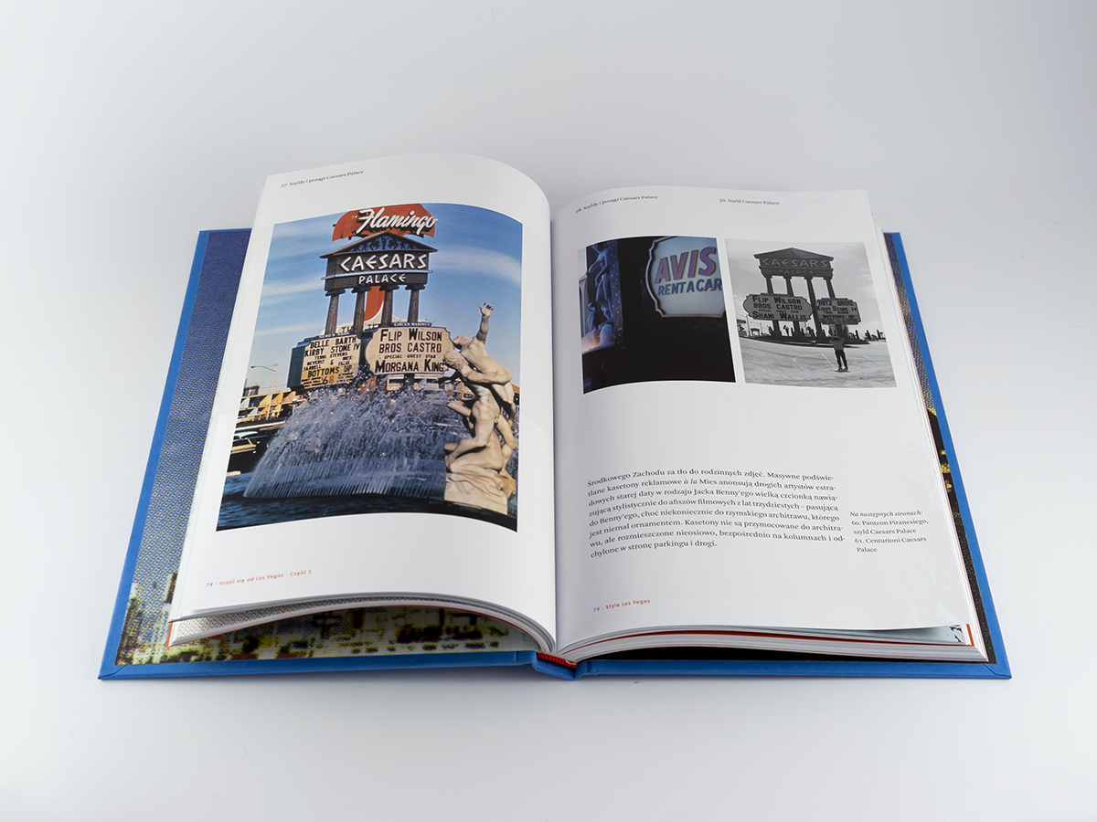 Uczyć się od Las Vegas is the Polish edition of Learning From Las Vegas, one of the most important books in the history of architecture. The main goal was to create a design which would present all the data and visual imagery in a clear, presentable, yet attractive way along with creating some sort of visual reference to the book’s subject. As it centers on the vernacular, I decided to choose distinctive Emigre fonts. To emphasise their voice I paired them with something completely different for the body text: Arnhem by Fred Smeijers. The front of the cover was inspired by numerous photographs from the book showing a variety of billboards and large-format signs from Vegas in the 60s.