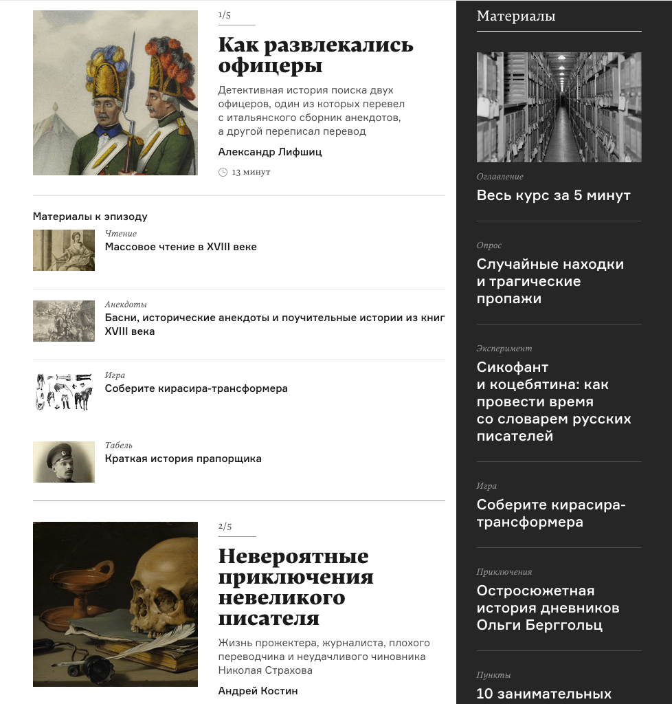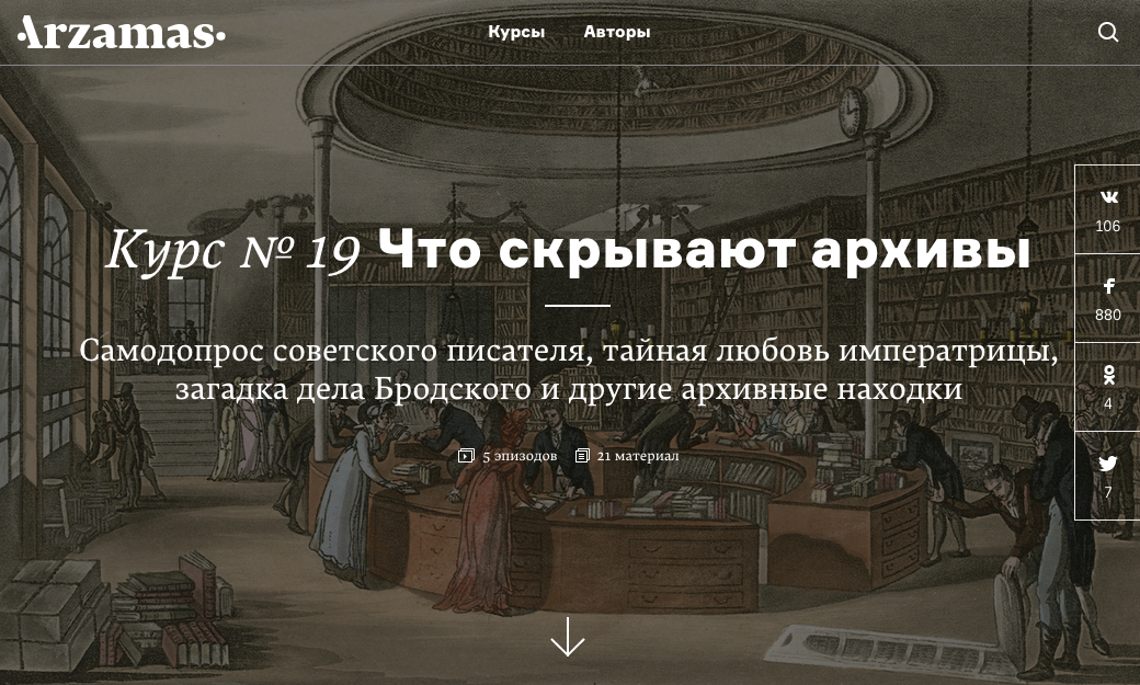 Arzamas is a non-profit educational project dedicated to the humanities. We create for you a kind of university that will bring the best teachers, and will be built right before your eyes.” — arzamas.academy
