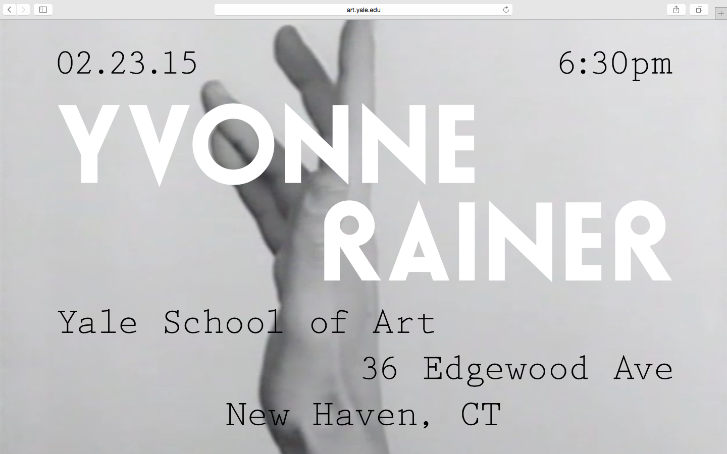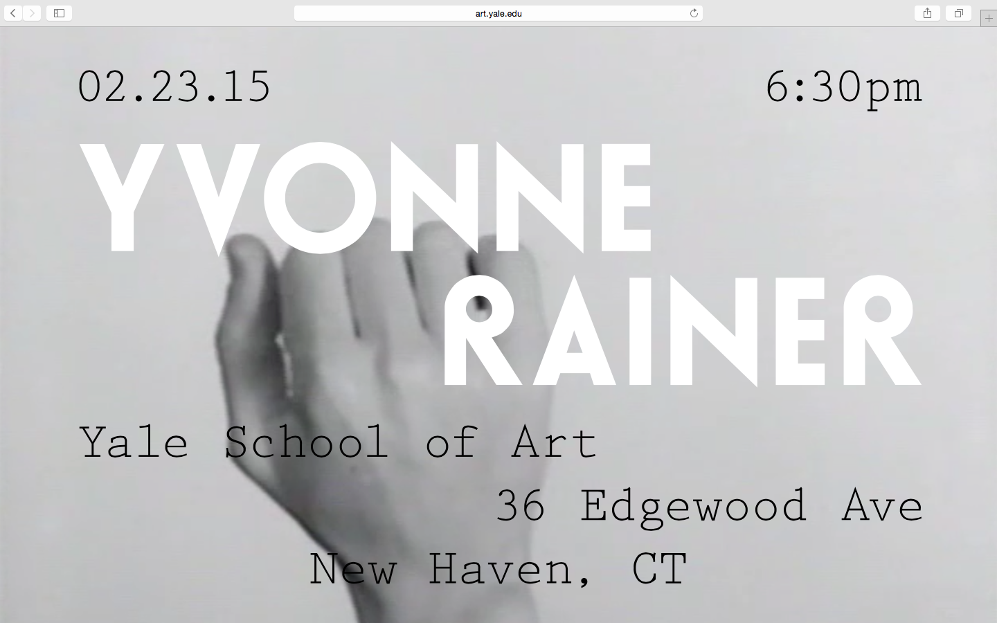 Yvonne Rainer lecture announcement Contributed by Yotam Hadar on Jun 22nd, 2015. Artwork published in February 2015. Source: old.yotamhadar.com Yotam Hadar. License: All Rights Reserved. A web/video announcement for a lecture by renowned dancer-choreographer Yvonne Rainer at the Yale School of Art. Featuring ITC Ronda Bold and Prestige Elite over Rainer’s Hand Movie from 1966. (video source: UbuWeb) Source: old.yotamhadar.com Yotam Hadar. License: All Rights Reserved. Source: old.yotamhadar.com Yotam Hadar. License: All Rights Reserved. Source: old.yotamhadar.com Yotam Hadar. License: All Rights Reserved. Typefaces More about ITC RondaGet ITC RondaMore about Prestige EliteGet Prestige Elite Formats Web (5516) Film/Video (1037) Topics Education/Academia (2145) Performing Arts (972) Designers/Agencies Yotam Hadar (7) Tagged withvideo (112)black and white (1982)dance (213)hand (2)reversed type on an image (1190)lectures/talks (143)Yale School of Art (6)Yale (7) Artwork location United States (9770) New Haven (23) In SetsFonts (Him Ga) (29)cool (Karo Konieczna) (871)Yale (Roque Strew) (9)Visual communication (Claire Dekens) (25)covid-19 advice (Chad Schram) (12)ITC (Florian Hardwig) (388)Unaffected (jipjam) (44)Pairings (Lucas Bevilaqua) (578)Art World (Lucas Bevilaqua) (649)B&W (Lucas Bevilaqua) (209)Distinctive Display (Lucas Bevilaqua) (159)Typewriter Vibes (Lucas Bevilaqua) (44) Post a comment Name Email – will not be published Website Your response Submit Comment More ITC Ronda in use NSA Security Education Program poster series (1950s–1970s)c. 1960unknownContributed by Fonts In Use Staff Staff Pick Anthony Burgess paperbacks (Ballantine Books)c. 1973unknownContributed by Mathieu Triay Arnie McKay – “Raining In My Heart” / “Hey Baby” Dutch single cover1975Contributed by Jorge Iván Moreno Majul Sponsor More in Education/Academia Jack Sinclair Letterpress Lab2011Jonny BlackContributed by Stephen Coles Staff Pick Filming the war: the Soviets and the Holocaust (1941–1946) exhibition and catalog2015L’Atelier collectifEmmanuel LabardAlexandre EssayieContributed by Production Type Staff Pick Encoded Symbols, IN Residence monographsc. 2020BRH+Contributed by BRH+ Gamepics – ECAL × Olympic Museum exhibition posterc. 2024Aude Meyer de StadelhofenECALContributed by Altiplano Typefaces More in Film/Video raye the store 062023Studio BöreckContributed by Studio Böreck McDonald’s advertising and packaging (1990s)c. 1993McDonald’sContributed by Jayce Wheeled Staff Pick Kowalski Quality Baked Goods in Fantastic Beastsc. 2016unknownContributed by Kimmy Kirkwood 49º Festival Sesc Melhores Filmes2023Paula CruzLucas D’AscençãoFernando DotiContributed by David Jonathan Ross Staff Pick More Fonts In Use RCA School of Architecture folios 2019c. 2019Studio ArdContributed by Robert Huber Staff Pick Patrick Cowley – Afternooners album art2017Gwenaël RattkeContributed by Florian Hardwig Staff Pick Law & Order1990Betty GreenHoward Anderson CompanyContributed by Nick Sherman Blog Moby Dick, the Arion Press edition1979Andrew HoyemArion PressContributed by Nick Sherman Blog