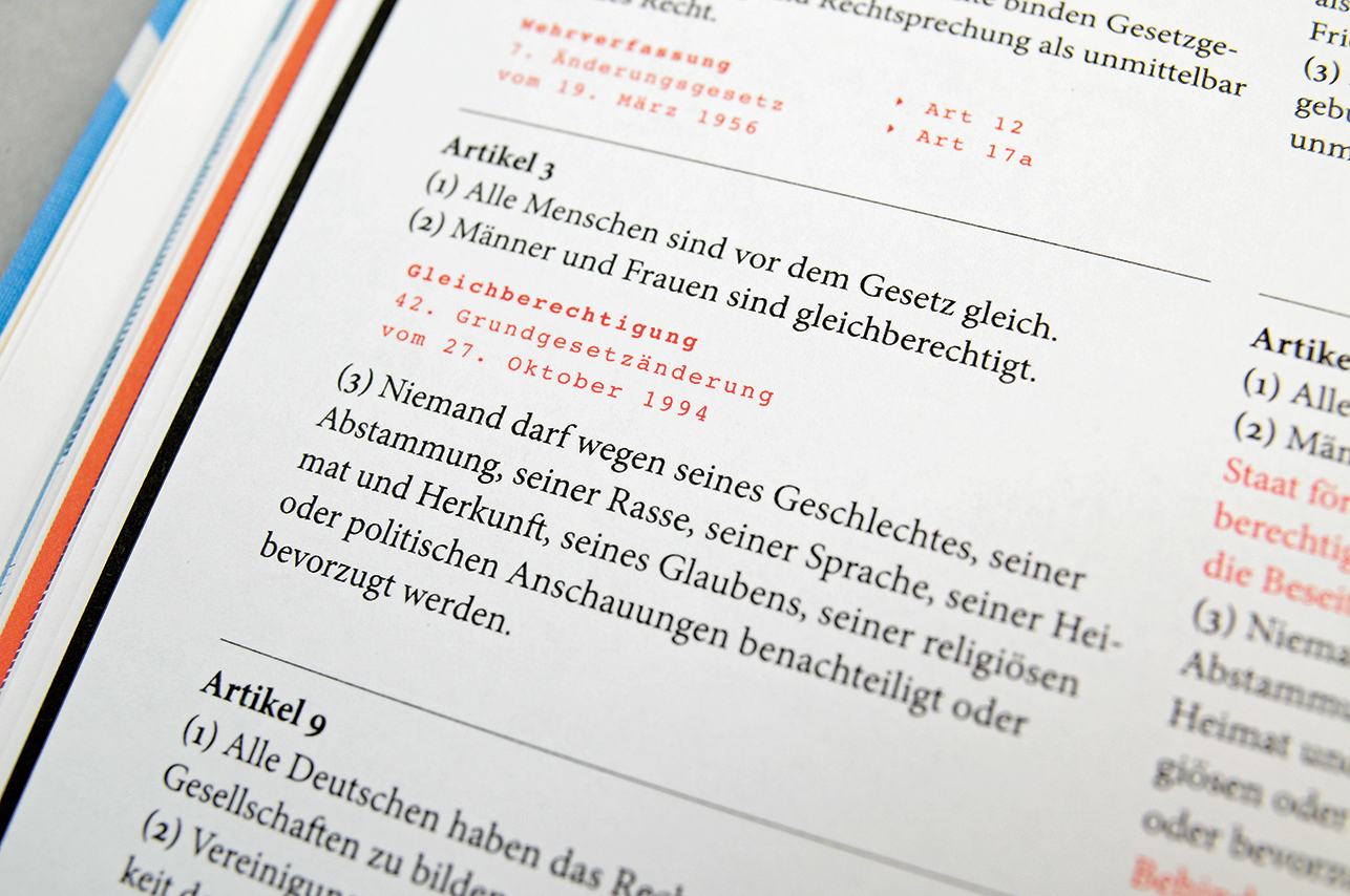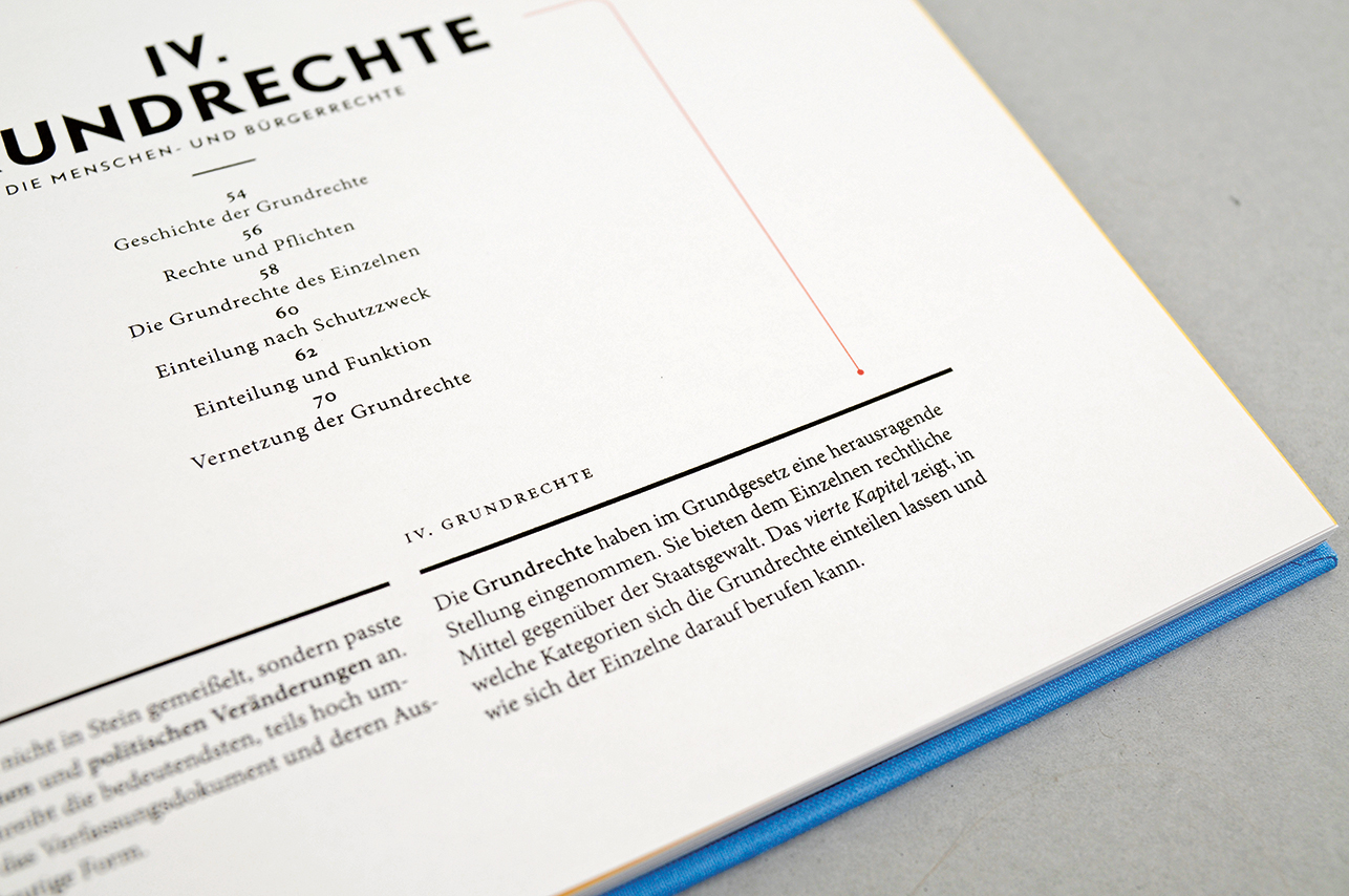 But now: magnetisation! The attempt of visualising abstract information, the decoding efforts of the author-designer pay off, if the reader appreciates this work, takes it on himself to decipher the codes and finally ends with admiration and gratitude towards those who have created our constitutional law.