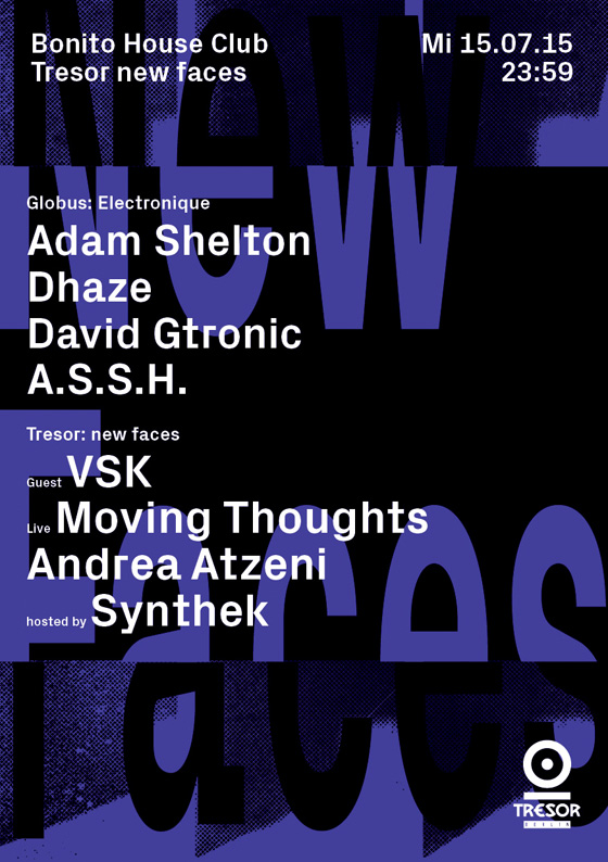 Tresor is an electronic music venue and label in Berlin. Plainly formatted concert posters are commonly pasted throughout this city, but this series, with the unusual Px Grotesk on top of interesting backgrounds and textures, caught my eye last week.