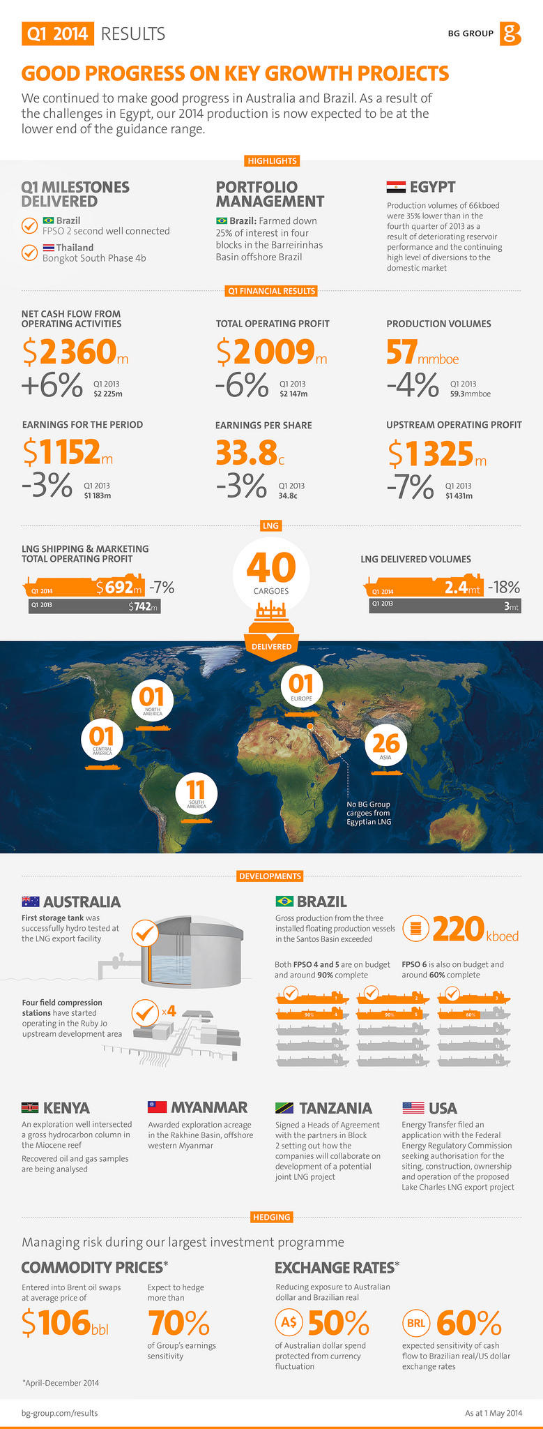 “BG Group plc is a British multinational oil and gas company headquartered in Reading, United Kingdom. The company was created in 1997 when British Gas plc divested Centrica and became BG plc, which was reorganised in 1999 as BG Group plc.” — Wikipedia