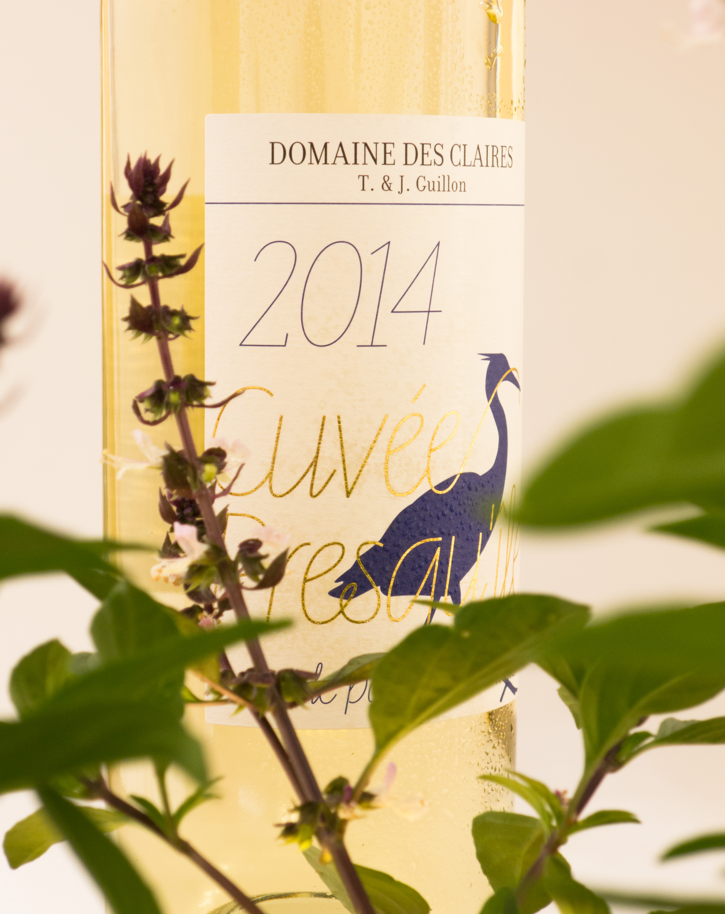 This label design was created for the new range of wines from Domaine des Claires. It is refined and feminine but still sober, for an elegant wine that has aged in oak barrels. Fedrigoni Merida paper has been combined with golden hot foil-stamping and a delicate Swedish typeface … et voila!