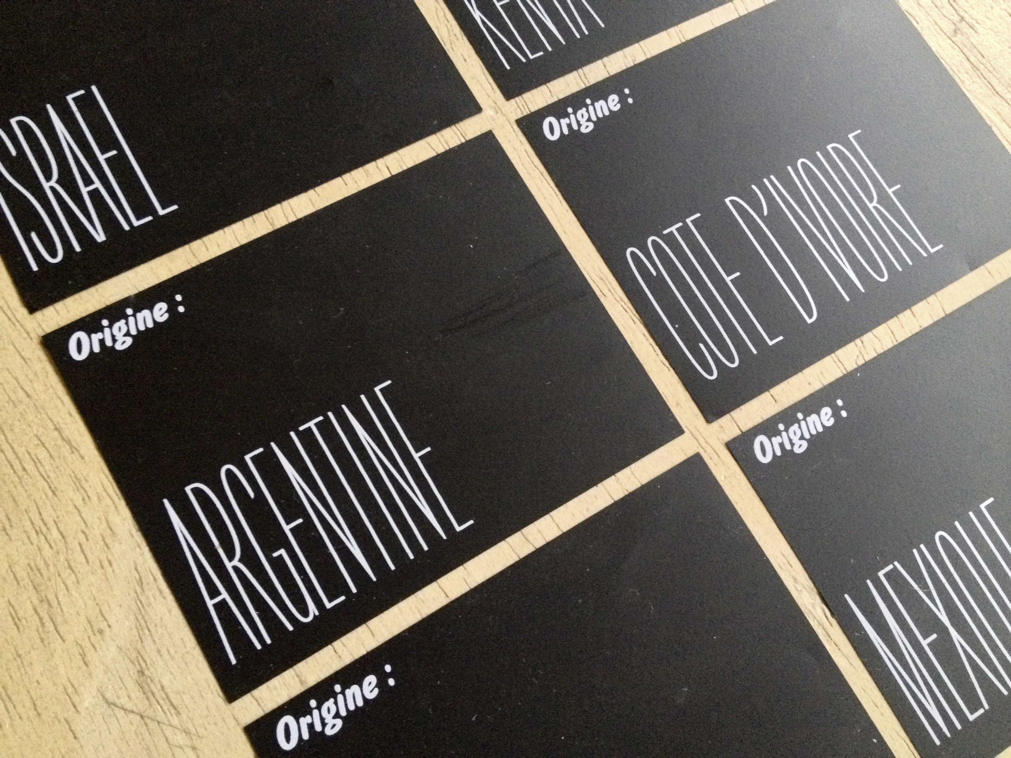 In France, it is a legal requirement that a food’s geographical origin must be the same point size as its price. Carrefour, a major retail group, commissioned Jean-Baptiste Levée to come up with a solution. The result is Origin Super Condensed. The extra narrow design was later expanded with a lowercase influenced by mid-20th-century and released for general licensing. [Production Type]