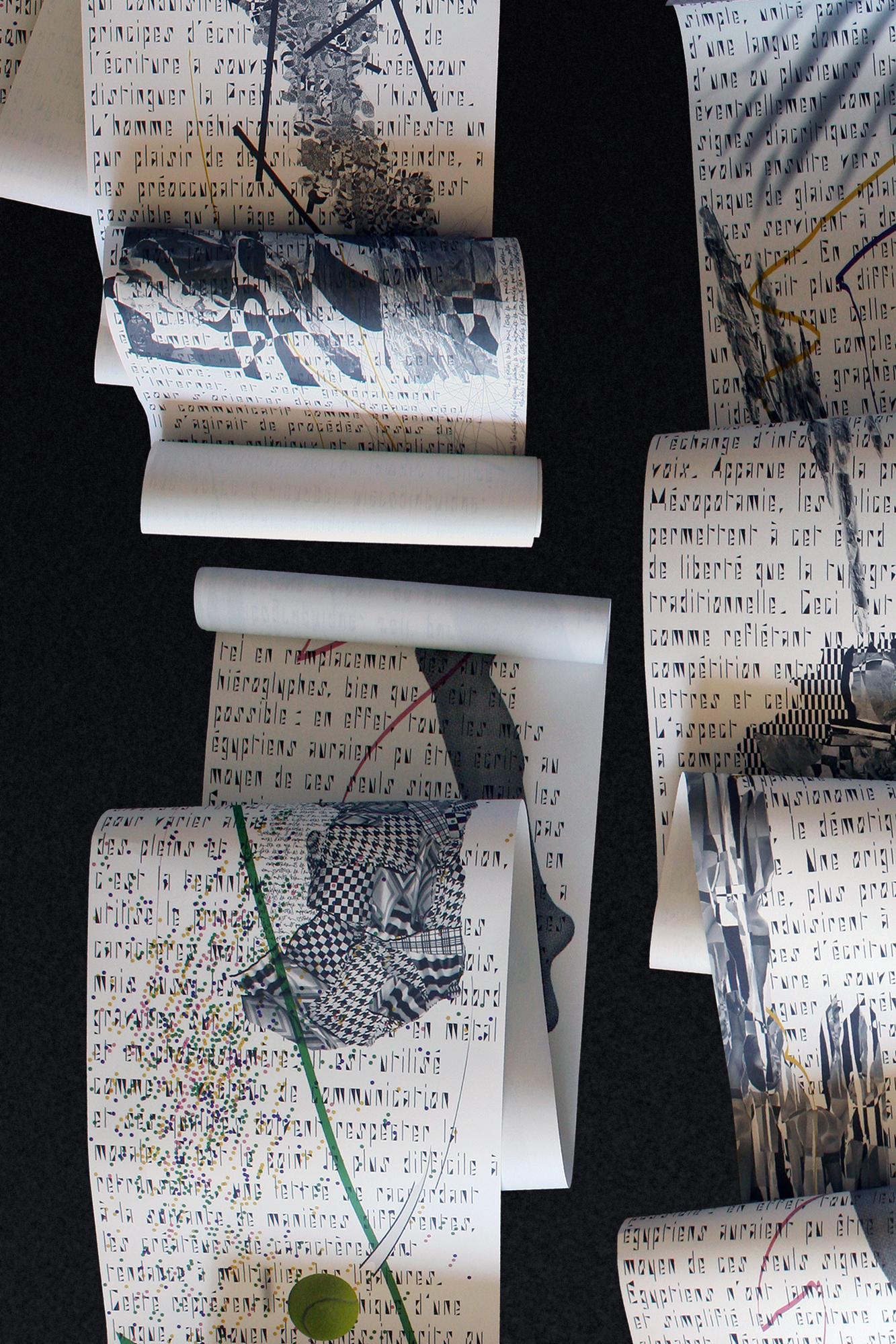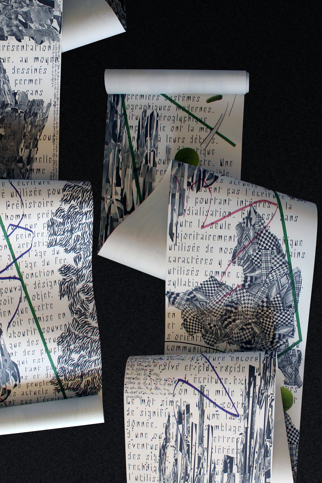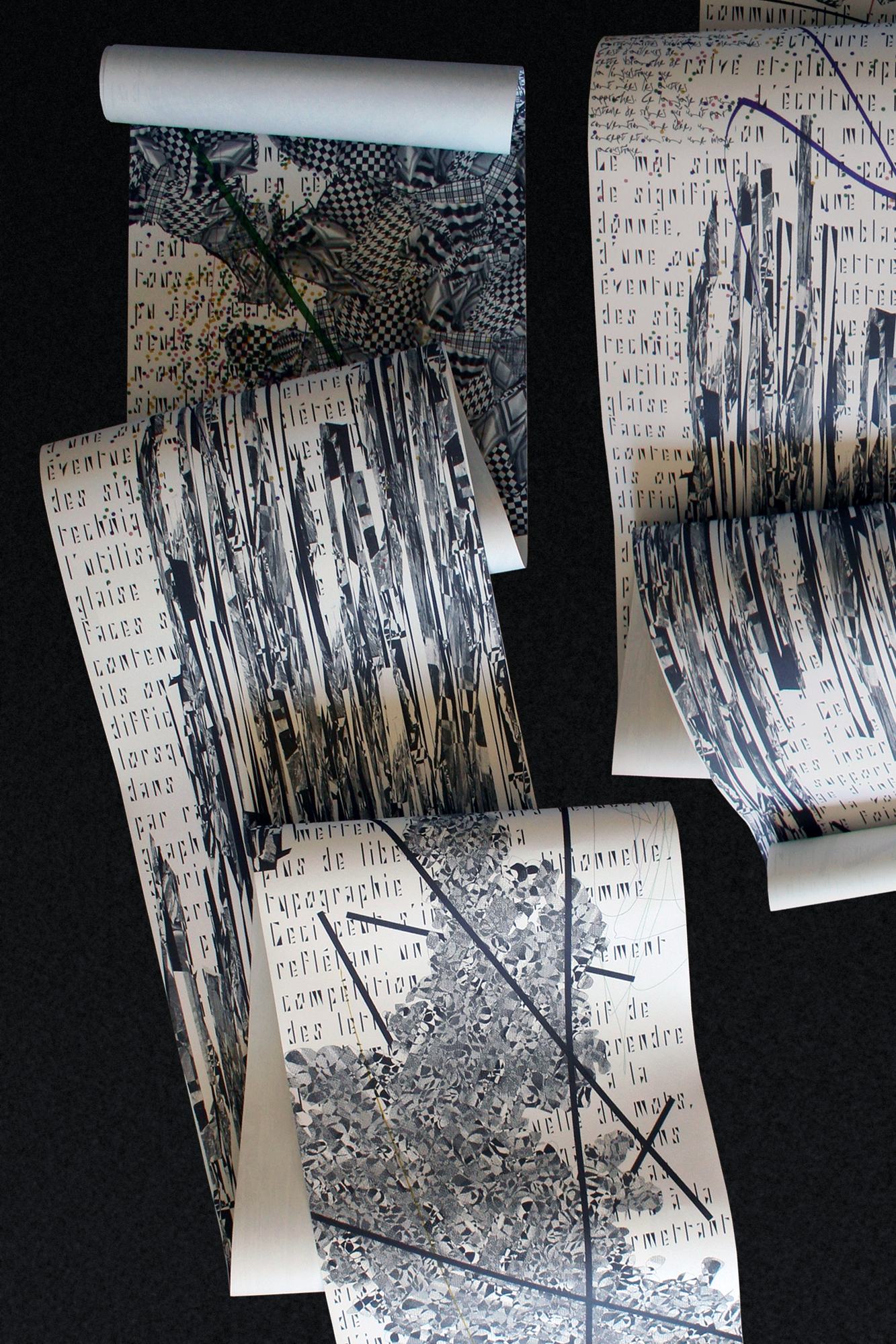 Text Column Regular and Text Column Bold are two wallpaper designs. Each has a column of text composed in the Side A typeface (Unit and Half), printed onto a snatched roll of paper measuring 10m×0.5m.