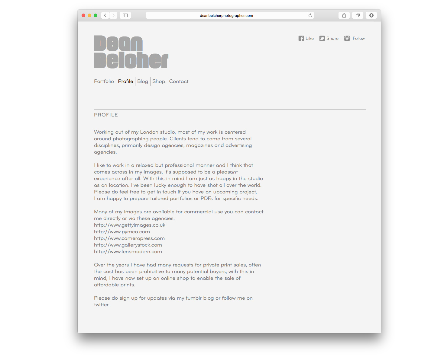 Dean Belcher Photographer Contributed by Deighton Lowe on Sep 25th, 2015. Artwork published in 2014. Source: www.deanbelcherphotographer.com License: All Rights Reserved. Portfolio website and graphic identity for London based photographer Dean Belcher. Lasagna used for name and Bryant used for main text. Designed by Deighton Lowe Design / Bite Digital License: All Rights Reserved. License: All Rights Reserved. Typefaces More about LasagnaGet LasagnaMore about BryantGet Bryant Formats Web (5714) Topics Graphic Design (3041) Designers/Agencies Deighton Lowe Design (2) Bite Digital (2) Tagged withphotography (992)photographers (188)portfolios (779) Artwork location United Kingdom (3333) London (1847) Post a comment Name Email – will not be published Website Your response Submit Comment More Bryant in use MOO identity and website (2014)2014Martin PavelyGiovanna LisignoliDenise WiltonContributed by Stephen Coles Seattle Met, September 20122012André MoraContributed by Stephen Coles Staff Pick Indiegogo Branding (2012)2012TRÜFContributed by Stephen Coles Sponsor More in Graphic Design “How to shape your Latin” typeface design workshop2017Alja HerlahContributed by Alja Herlah Clap magazine2018Andrés VillanuevaHelena LlopContributed by Helena Llop Supple Studio identity2017Supple StudioJamie EllulContributed by F37® Daniel Ehrenworth2015Underline StudioContributed by Chris Purcell Staff Pick More in Web Protean Funds Scandinavia identity and website2025Frostner StudioContributed by Martin Frostner Staff Pick Surinam Airwaysc. 1975unknownContributed by Florian Hardwig Bio‑Hybrid identity2018BrandcodeContributed by TypeMates Borsch Vodka & Tears2014David TorrContributed by David Torr More Fonts In Use Festival Estéreo Picnic 20172016Agencia MilagrosContributed by Étienne Aubert Bonn Staff Pick Itzy – “Not Shy”2020unknownContributed by VJ-Type Staff Pick Kunsten å ikke kaste matc. 2018HandverkEivind Stoud PlatouContributed by Frode Helland (Monokrom Skriftforlag) Staff Pick Behind the News movie poster2021Serious PlayDavid LöweContributed by David Loewe Staff Pick