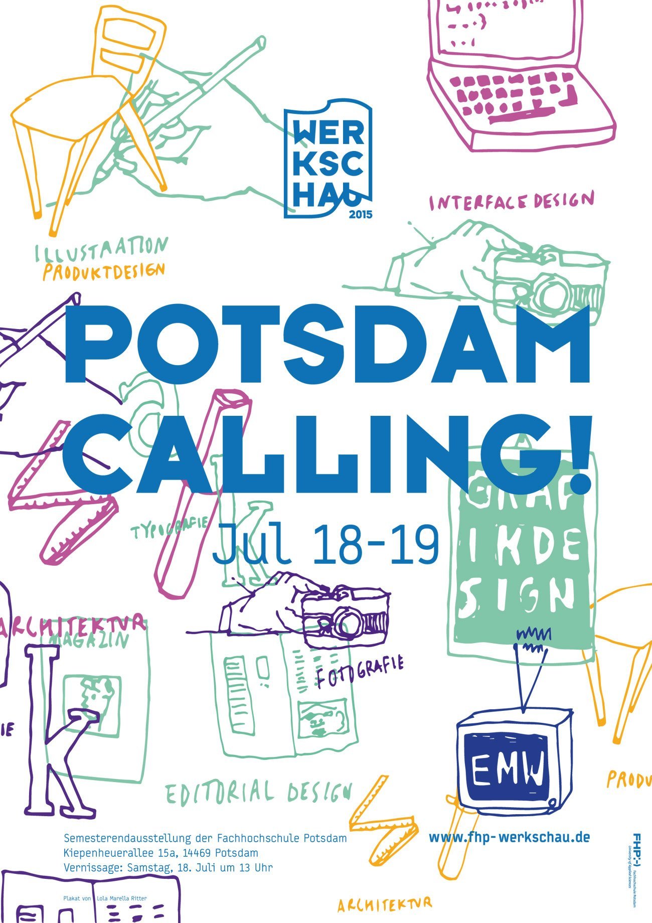 Werkschau is the annual end of the term exhibition of the Design and Architecture departments of FH Potsdam. The 2015 edition was headlined “Potsdam Calling”. A team of students organized a program consisting of lectures, workshops and a party.