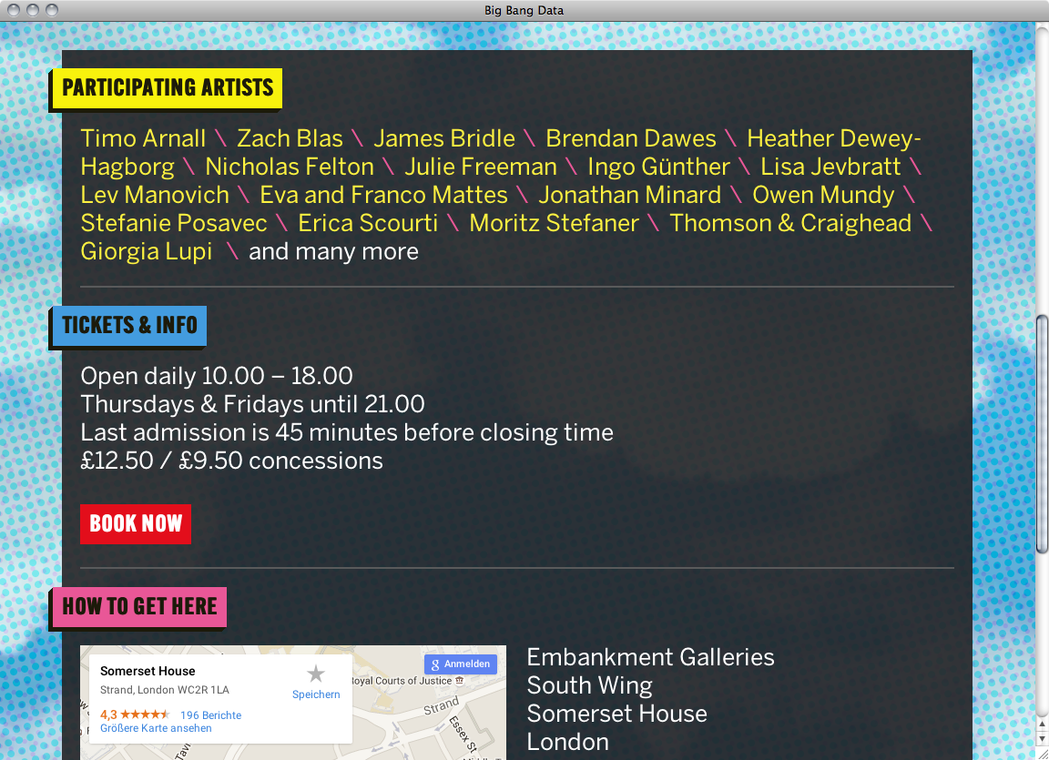 On the website of Big Bang Data, an exhibition at the Somerset House in London about the current data explosion, ATF Alternate Gothic is used in caps for Navigation and section headings in combination with Benton Sans for other HTML text.
