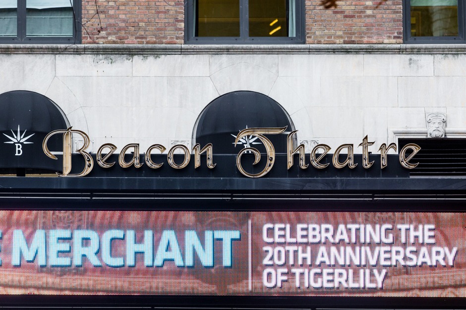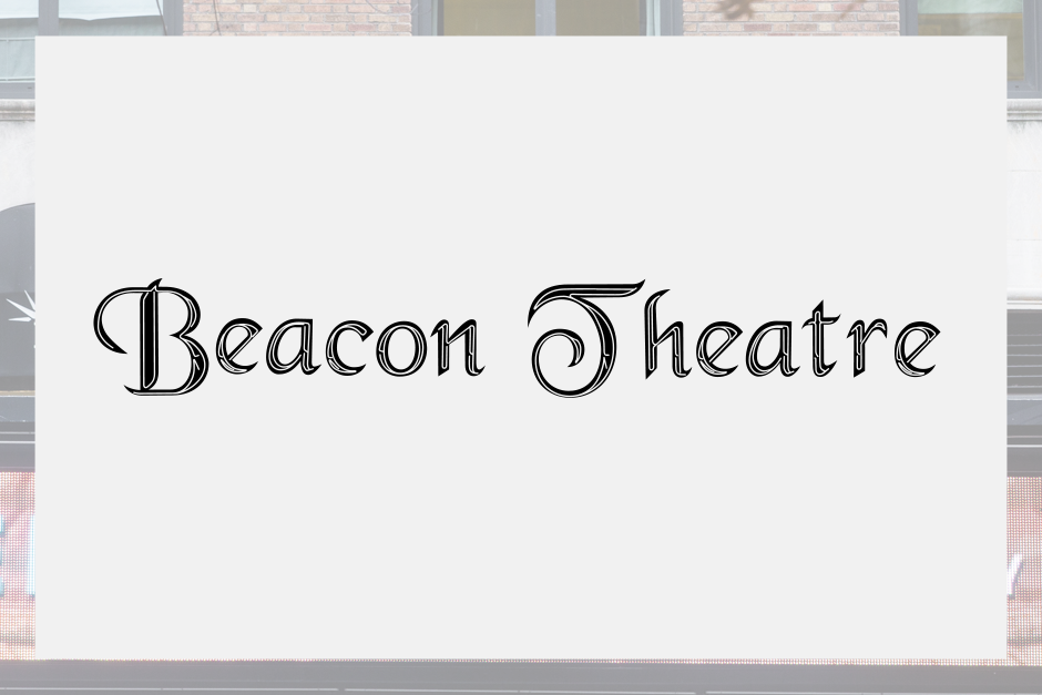 “The historic Beacon Theatre has changed hands a few times since it was first built in 1929, with each new owner introducing new marquee signage. Despite its authentic vintage appearance, the current Beacon Theatre sign is less than twenty years old; while its exact date of replacement has been difficult to pinpoint, historic photos suggest the new sign made its appearance sometime between 1998 and 2000. This newest sign uses typeface called Black Chancery, a disjointed script created by Doug Miles and Earl Allen in 1993 [actually, 1991 — SC]. The Beacon Theatre is currently owned by The Madison Square Garden Company, who put the marquee back into working order as part of its massive $16 million restoration of the theater’s landmarked interior in 2008.” — Hopes&Fears