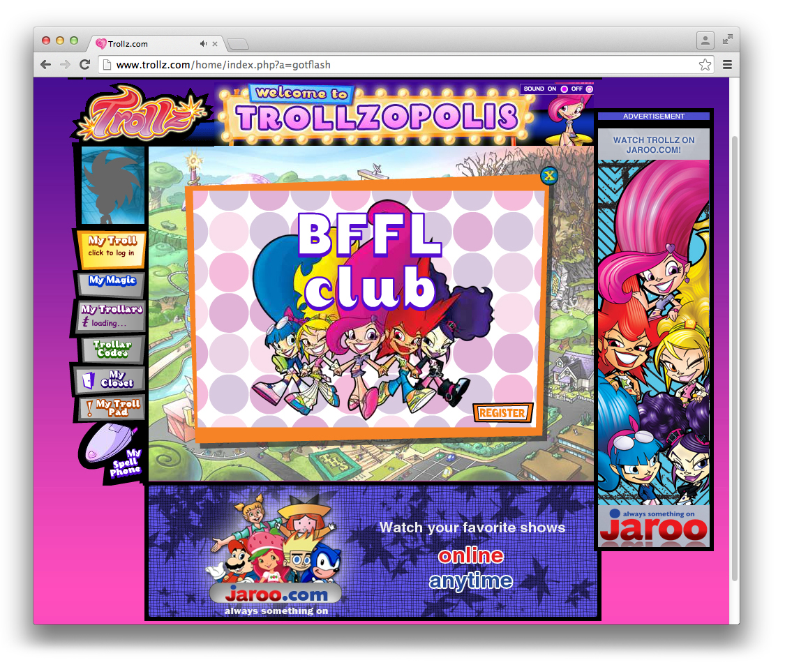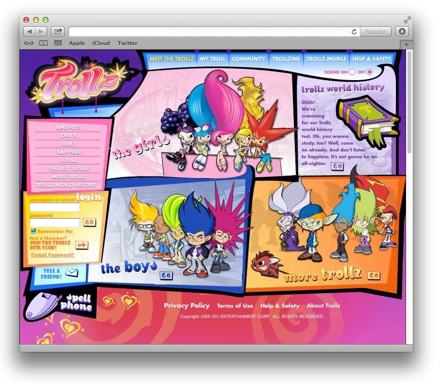 Trollz is an American animated television series produced by DiC Entertainment (now DHX Media) and features the adventures of five teenage girls, who call themselves the Best Friends for Life, who use magic to help them with their everyday life as well as battling whatever magical creatures and problems they may find themselves up against. These trollz were based on the troll doll created in the 1960s becoming one of the biggest fads in the world. – Wikipedia