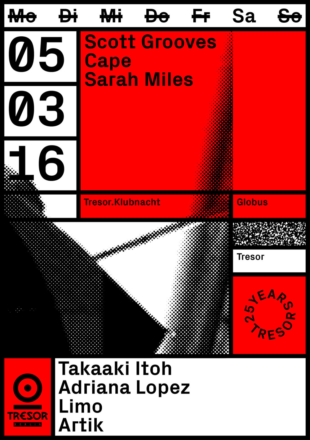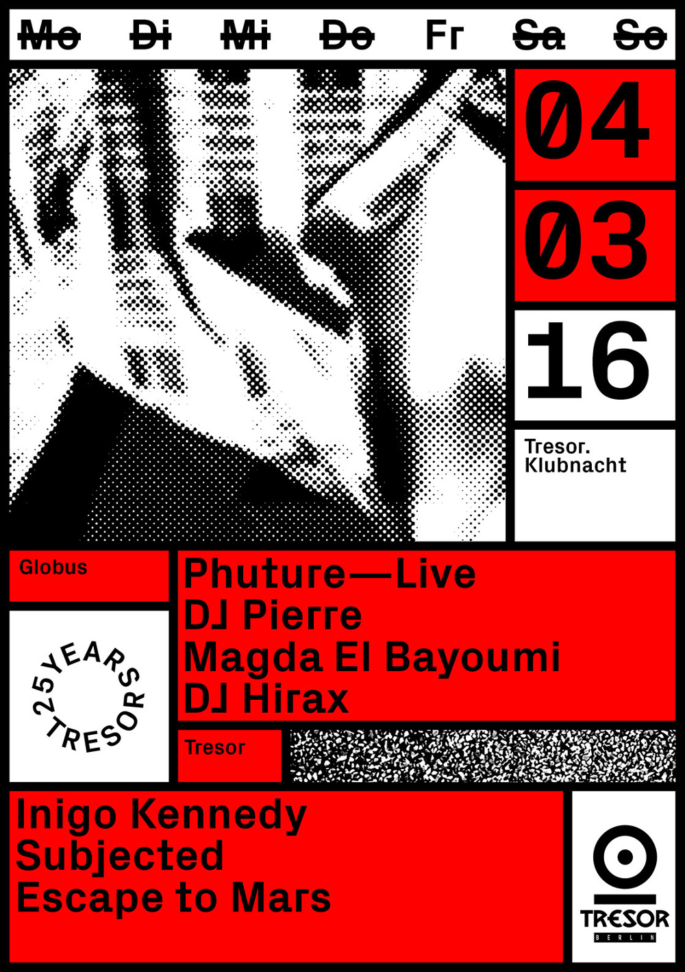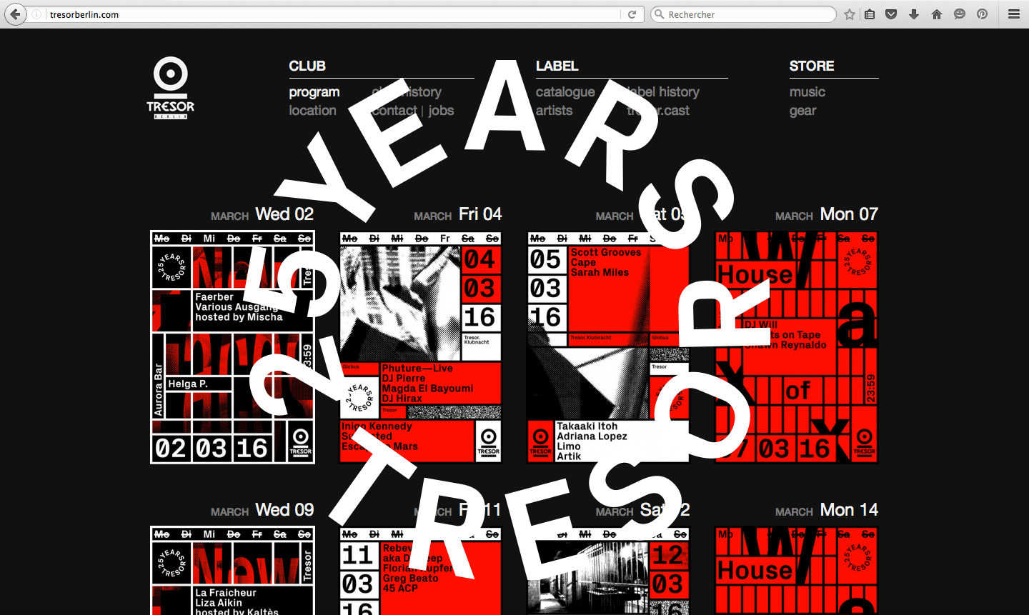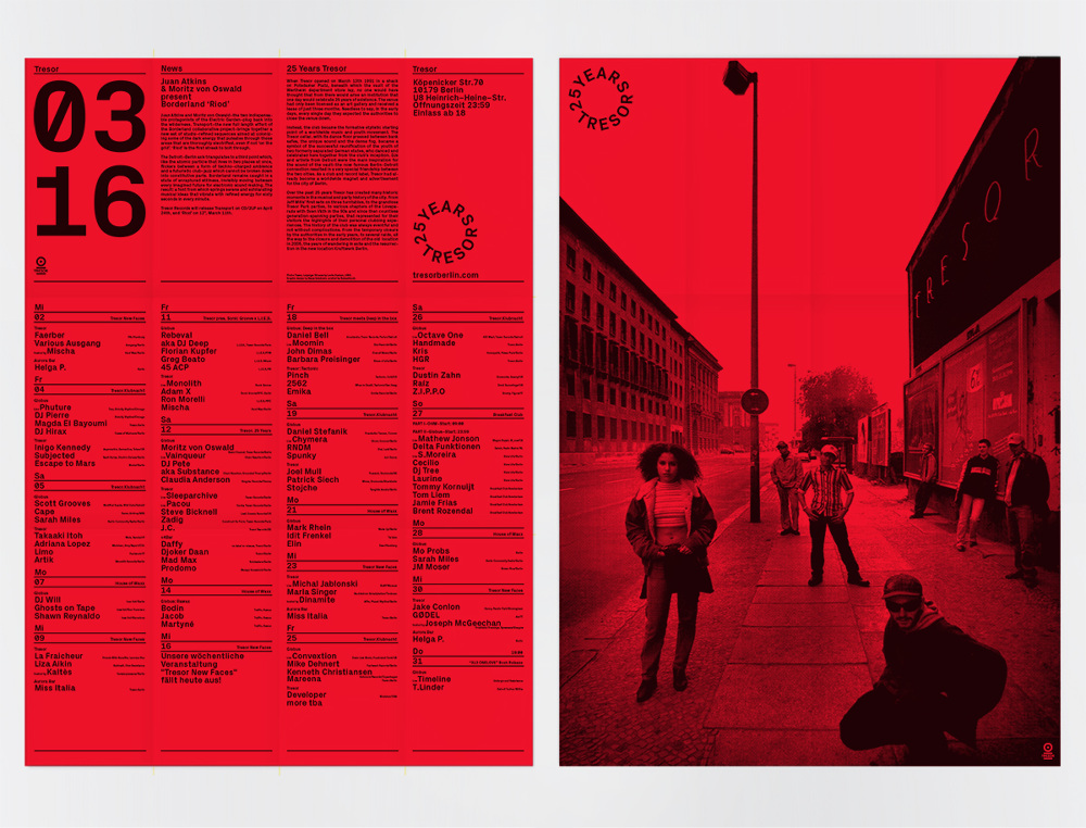 25 Years Tresor Contributed by Stephen Coles on Mar 31st, 2016. Artwork published in 2016. Source: www.vanjagolubovic.ch License: All Rights Reserved. Just as she did throughout 2015, Vanja Golubovic designed all of the striking material for the Berlin techno club's 25th anniversary using Px Grotesk. The only thing from this strong package that troubles me is the rotation on that ‘T’ in the logo. It just feels a tad off. Type on a circle is hard. Source: www.vanjagolubovic.ch License: All Rights Reserved. Source: www.vanjagolubovic.ch License: All Rights Reserved. Source: www.vanjagolubovic.ch License: All Rights Reserved. Source: www.vanjagolubovic.ch License: All Rights Reserved. Source: www.vanjagolubovic.ch License: All Rights Reserved. Source: www.vanjagolubovic.ch License: All Rights Reserved. Source: www.vanjagolubovic.ch License: All Rights Reserved. Source: www.vanjagolubovic.ch License: All Rights Reserved. Source: www.vanjagolubovic.ch License: All Rights Reserved. Source: www.vanjagolubovic.ch License: All Rights Reserved. Source: www.vanjagolubovic.ch License: All Rights Reserved. Source: www.vanjagolubovic.ch License: All Rights Reserved. Typefaces More about Px GroteskGet Px Grotesk Formats Branding/Identity (8612) Posters/Flyers (5872) Album Art (4306) Topics Music (6455) Designers/Agencies Vanja Golubovic (3) Tagged withTresor (Berlin music venue & label) (4)album records (2872)type on a circle (888)logos (5119)anniversaries (367)one typeface (1766)T-shirts (645)techno music (147) Artwork location Germany (3926) Berlin (1166) In Setscool (Karo Konieczna) (870)[1] (Ivan Ilic) (172)Berlin Street Type (Florian Hardwig) (162)Nice (sam daly) (50)poster (Philippe Lepilleur) (342)music album (Philippe Lepilleur) (114) Post a comment Name Email – will not be published Website Your response Submit Comment More Px Grotesk in use Tresor ’97–’99 by Surgeon2015Vanja GolubovicContributed by Stephen Coles “Aleatorik. Zufall als Werkzeug” lecture poster2019Erik Anton ReinhardtContributed by Erik Anton Reinhardt Neo.Life2019UpstatementNicholas VokeyNathan HassContributed by Florian Hardwig Staff Pick Sponsor More in Music Shrty – Heartbreak Kid album art2021Julian GrönbergSimbayu StudiosContributed by Julian Grönberg Alessandro Crimi – Sirius (NEX006) cassette cover2021Paul ManwaringContributed by Paul Manwaring Devendra Banhart European Tour Winter 2020 poster2020Aaron Lowell DentonContributed by Bryson Stohr Staff Pick The Cooke Duet – God Is Not Dead, He’s Still Alive album art1970Contributed by Owen Gardner More in Posters/Flyers Campus by Google2017MultiAdaptorContributed by Richard Baird Staff Pick Sporting, DEMO2018Jordan FosterContributed by Jordan Foster Architectures Utopiques, Visarte2018Chloé PannatierContributed by Chloé Pannatier Pentecost 2018 poster2018Sye RobertsonContributed by Sye Robertson More Fonts In Use @telier website2018XXIXContributed by Nick Sherman Staff Pick Naomi Osaka website2021Zhenya RynzhukGoDaddyContributed by WELTKERN® Typefaces Staff Pick Academy Cinema postersc. 1960Peter StrausfeldContributed by Michael Bojkowski Staff Pick Distance of a shadow2021CoversContributed by Covers Staff Pick