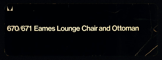 Product label. Black and white. Offset lithograph printed on both sides. Hole-punched at top center. Verso describes upkeep and care of the various components of the lounge chair. Good condition. Creasing at corner and small tear and black residue at punched hole on verso. 11 x 3.75".