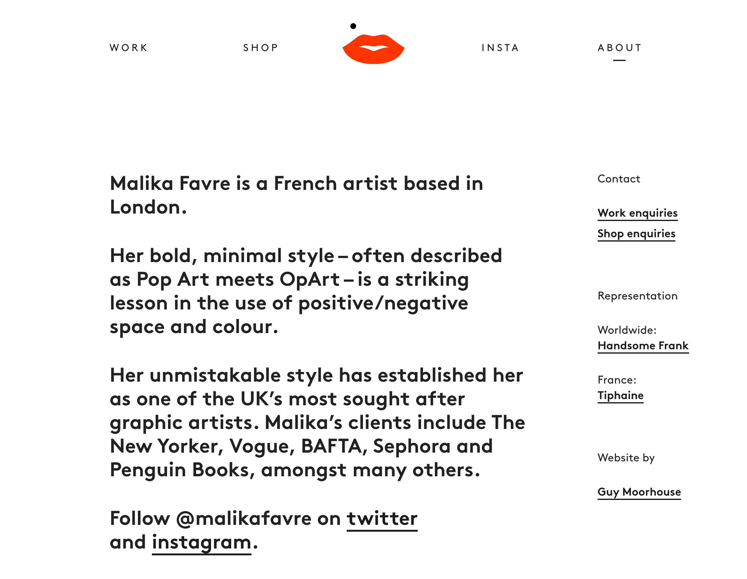 Malika Favre is a French artist/illustrator based in London. Her 2015 website was designed and developed by Guy Moorhouse, who said this about the type choice: