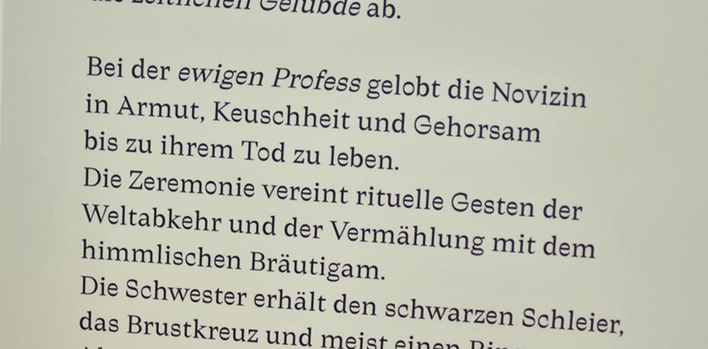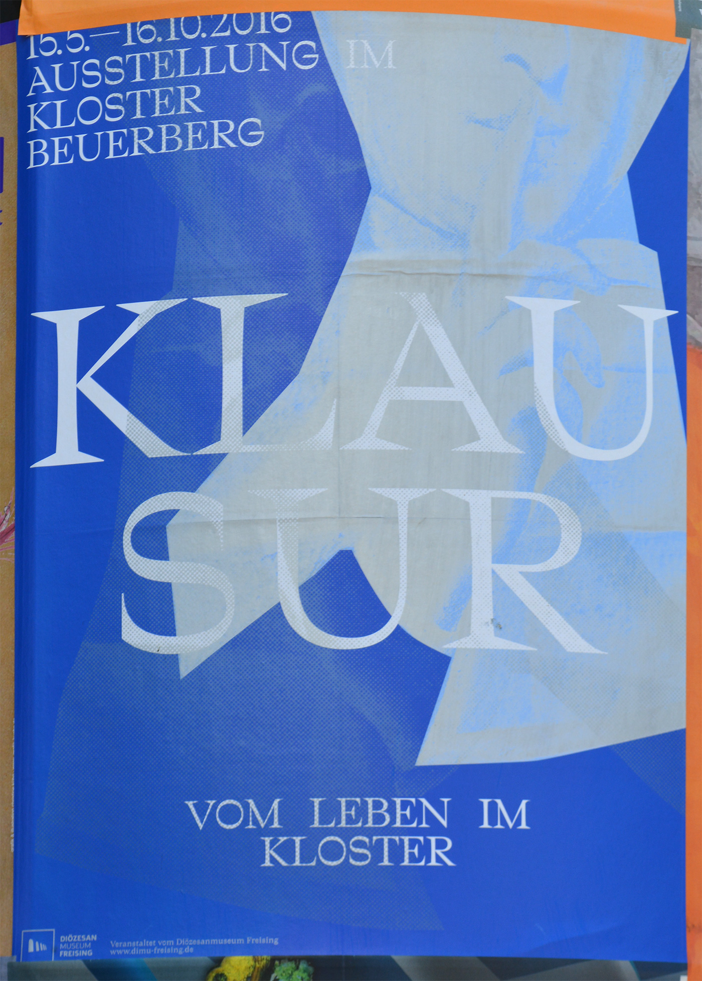 Klausur – Vom Leben im Kloster Contributed by Florian Hardwig on Aug 8th, 2016. Artwork published in 2016. Source: www.dimu-freising.de Diözesanmuseum Freising. License: All Rights Reserved. Klausur — Vom Leben im Kloster (“Seclusion — On Life in the Monastery”) is a special exhibition at Kloster Beuerberg (Beuerberg Abbey), organized by the Diözesanmuseum Freising. The web banner and the posters use Traulha Regulara in all caps. Yoann Minet’s contemporary Latin is used for the exhibition graphics, too. Photo: Florian Hardwig. License: CC BY-NC-SA. Photo: Florian Hardwig. License: CC BY-NC-SA. Source: holzkirchnerstimme.de Holzkirchner Stimme. License: All Rights Reserved. Regrettably, the exhibition graphics use a slanted Traulha instead of the dainty Traulha Italica, Typefaces More about TraulhaGet Traulha Formats Posters/Flyers (5644) Exhibition/Installation (1149) Topics Event (3144) Religion/Spirituality (417) Designers/Agencies Studio Johannes Bissinger (2) Tagged withall caps (7408)reversed type on an image (1190)mid-word linebreaks (746)exhibition posters (720)monasteries (15)Diözesanmuseum Freising (2)Kloster Beuerberg (1)faux italic/slanted (230)German (language) (2447) Artwork location Germany (3790) Freising (2) Beuerberg (1) In SetsSkin (Nicole Regan) (52) Post a comment Name Email – will not be published Website Your response Submit Comment More Traulha in use Architekturgalerie am Weißenhof, Bauhaus Year 20192019Finken & BumillerWagner RexinDirk WagnerContributed by Production Type L—P wedding invitationsc. 2020Will MillerContributed by Will Miller Theater an der Wien visual identity and websitec. 2022studio VIEAnouk RehorekChristian SchlagerContributed by Alex Slobzheninov Sponsor More in Event Continental Hotel menu, Christmas 18831883unknownContributed by Stephen Coles ATypI 2024 Brisbane2024LivewormKatie MaxfieldContributed by David Sargent La Cartonneriec. 2023Lucie PochetAletheiaContributed by Edgar Walthert Sun Cycle 2024 NYD music festival2023Untitled GroupContributed by Revolver Type Foundry More in Exhibition/Installation Anden Krop exhibition at Fuglsang Kunstmuseum2025Spine StudioContributed by Julien Priez Staff Pick Habiter le campement exhibition2016David BenmussaContributed by Production Type Superfine: Tailoring Black Style at The Metropolitan Museum of Art2025The Metropolitan Museum of ArtSarah PulvirentiContributed by Daniel McQueen (TDF) Staff Pick Tramlines festival 20252025unknownContributed by Gareth Hague More Fonts In Use Soulful Sessions2021Tijsje RevalkContributed by Anastasia Balashova (Contrast Foundry) Staff Pick Pulp, issues 01–062014Simon EstersonHolly CatfordContributed by Stephen Coles Staff Pick The Concrete Project2018MurmureContributed by Jérémy Landes (Studio Triple) Staff Pick Soft Studio2020Nick AlmquistContributed by WELTKERN® Typefaces Staff Pick