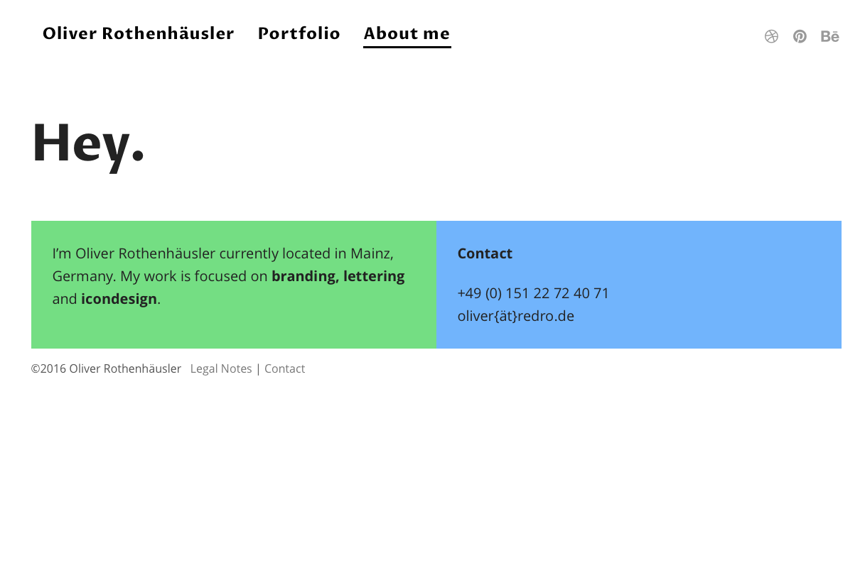 redro.de Contributed by Jasper de Waard on Nov 8th, 2016. Artwork published in November 2016. Source: redro.de Oliver Rothenhäusler. License: Public Domain. Redro.de is the portfolio website of Oliver Rothenhäusler. Source: redro.de Oliver Rothenhäusler. License: Public Domain. Typefaces More about Proza LibreGet Proza LibreMore about Open SansGet Open Sans Formats Web (5556) Topics Graphic Design (2978) Designers/Agencies Oliver Rothenhäusler (5) Tagged withportfolios (759)personal websites (261) Artwork location Germany (3827) Mainz (30) In Setsgothic (솔은 한) (7) Post a comment Name Email – will not be published Website Your response Submit Comment More Open Sans in use CROCI PIETRO / Pavimenti & Rivestimenti2014Riccardo AnelliContributed by Riccardo Anelli 23 Video2013Contributed by Webtype Corridor Crewc. 2024Contributed by Christopher King Sponsor More in Graphic Design Büro Brux2019Oliver BruxContributed by Oliver Brux Transmission Eleven2006Ian EdmondsonOne Point SixContributed by Ian Edmondson Typographic Anatomy Poster2010Scott BomsLuke DornyGrant HutchinsonPhoto(s) by Grant Hutchinson on Flickr. Staff Pick Type Life magazine #1, Special Lab (v2)c. 2018Swiss TypefacesContributed by Swiss Typefaces More in Web Leah Downing portfolio website2020Leah DowningContributed by Alain Papazian St. Leo visual identity2020Alex Hunting StudioContributed by Alex Hunting Studio Staff Pick Typographics 2016 branding2016Nick ShermanMark RossiJessica KuronenContributed by Type@Cooper Staff Pick Milee Identity2022EMME & CoContributed by Zero Morales More Fonts In Use Maureen McGovern – “The Morning After” / “Midnight Storm” Dutch single cover1972unknownContributed by Jan Middendorp Staff Pick NNormal2022Régis TosettiSimon PalmieriContributed by Maxitype Staff Pick Volkspark Wilmersdorf signunknownContributed by Florian Hardwig Staff Pick ensemble protonc. 2014Kaspar AllenbachContributed by Kaspar Allenbach Staff Pick