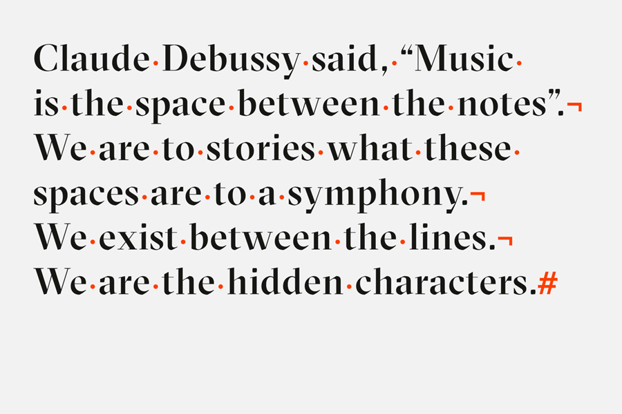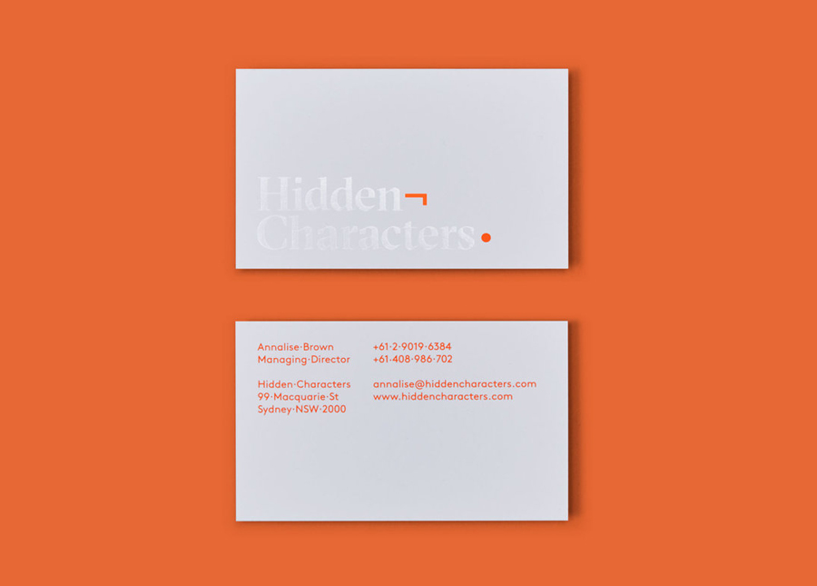 Sydney-based graphic design studio RE worked to create a brand identity for Hidden Characters that articulates this intention with a concept that makes a connection between the hidden characters that shape how text appears and the creative behind the scenes shaping of a brand’s public perception. The idea of the seen and unseen plays out in a number of ways in print using color, print finish, GT Sectra and LL Brown, and link business cards, headed paper, stationery and brochure.
