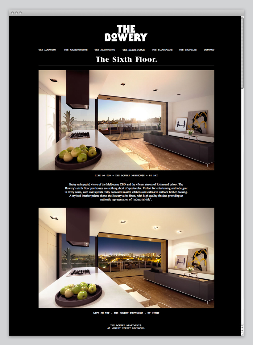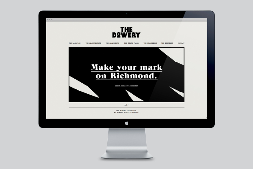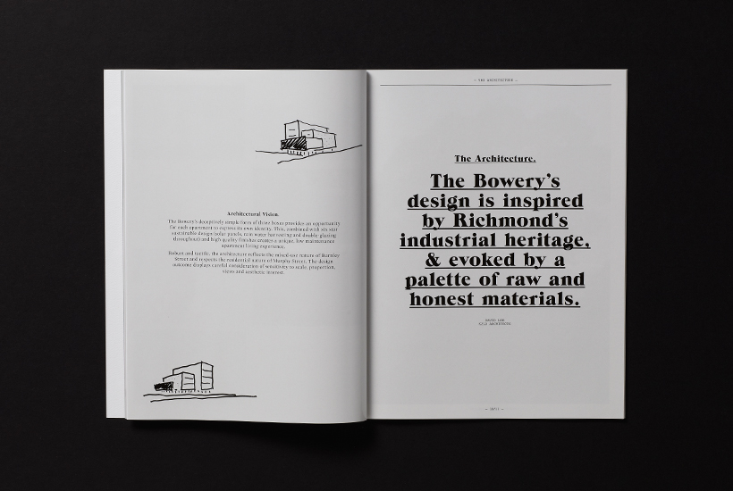 The Bowery Apartments offer superb, design-focused living in the heart of one of Melbourne’s most vibrant inner suburbs. We developed a unique brand strategy conceptually based on one of the most recognisable real estate districts in the world; New York City’s Bowery. Drawing parallels between this iconic area and Richmond’s new life, we developed a range of communication tools that were both comprehensive, and reflected a feel of expressive living.