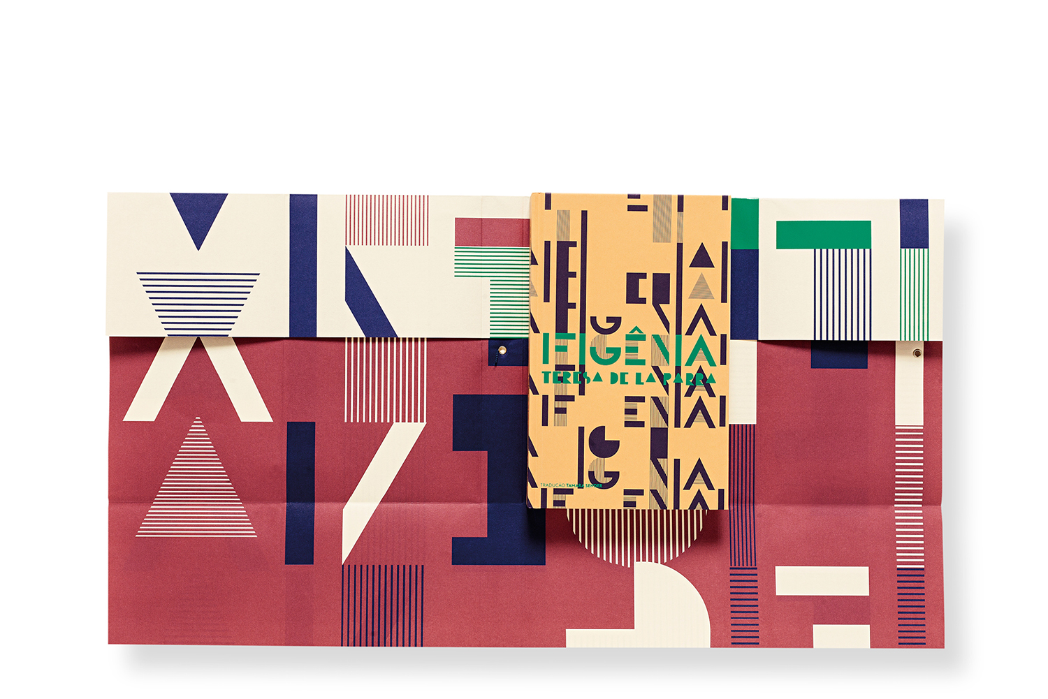 The typography in P22 Bifur, a digital interpretation of Cassandre’s Bifur (1928), refers directly to the time and place that the novel was written. The pieces of the letters, on the cover, was a graphic metaphor of deconstruction of the female protagonist expected resignation at that time. The book jacket was conceived as a wrapping paper envelope that holds her diary (the book). The colors were borrowed from the Brazilian graphic artist of the same period, J. Carlos.