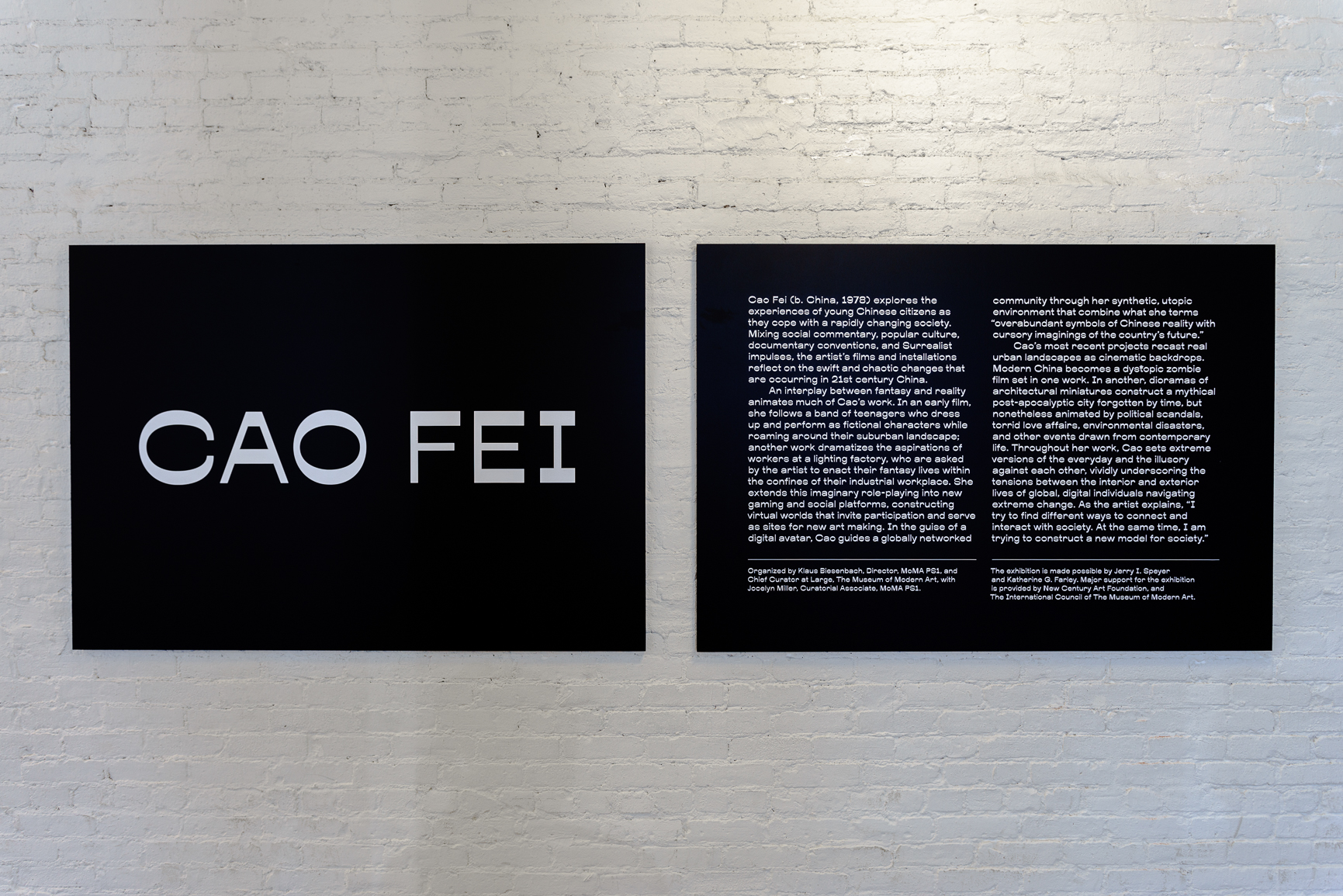 presents the first museum solo show in the United States of Beijing-based artist Cao Fei. One of the most innovative young artists to have emerged from China, Cao Fei creates multimedia projects that explore the experiences of young Chinese citizens as they develop strategies for overcoming and escaping the realities of a rapidly changing society. Mixing social commentary, pop aesthetics, references to Surrealism, and documentary conventions in her films and installations, the artist reflects on the swift and chaotic changes occurring in Chinese society.