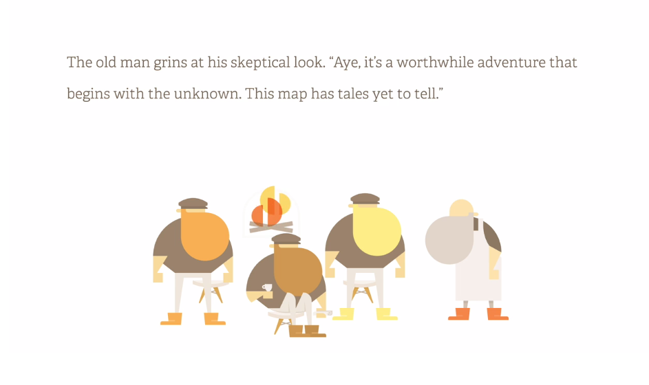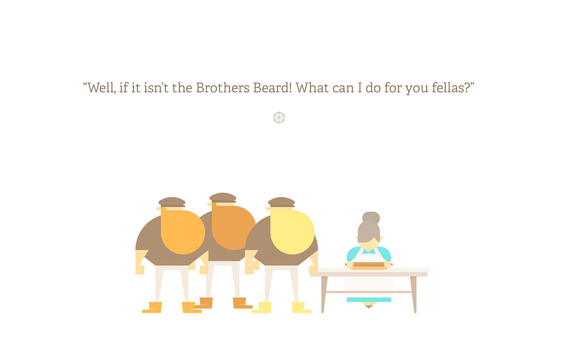 Every detail of the game has been taken into consideration, the minimalistic aesthetic of the illustration, the soundtrack whimsically composed by Plied Sound, the sound effects, and the typography. The typeface in use for the stories is Adelle. In the designers words, ‘Adelle was a great fit for that aesthetic, and we’ve gotten many, many compliments on our font choice and typography.’