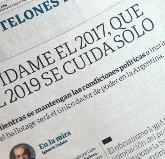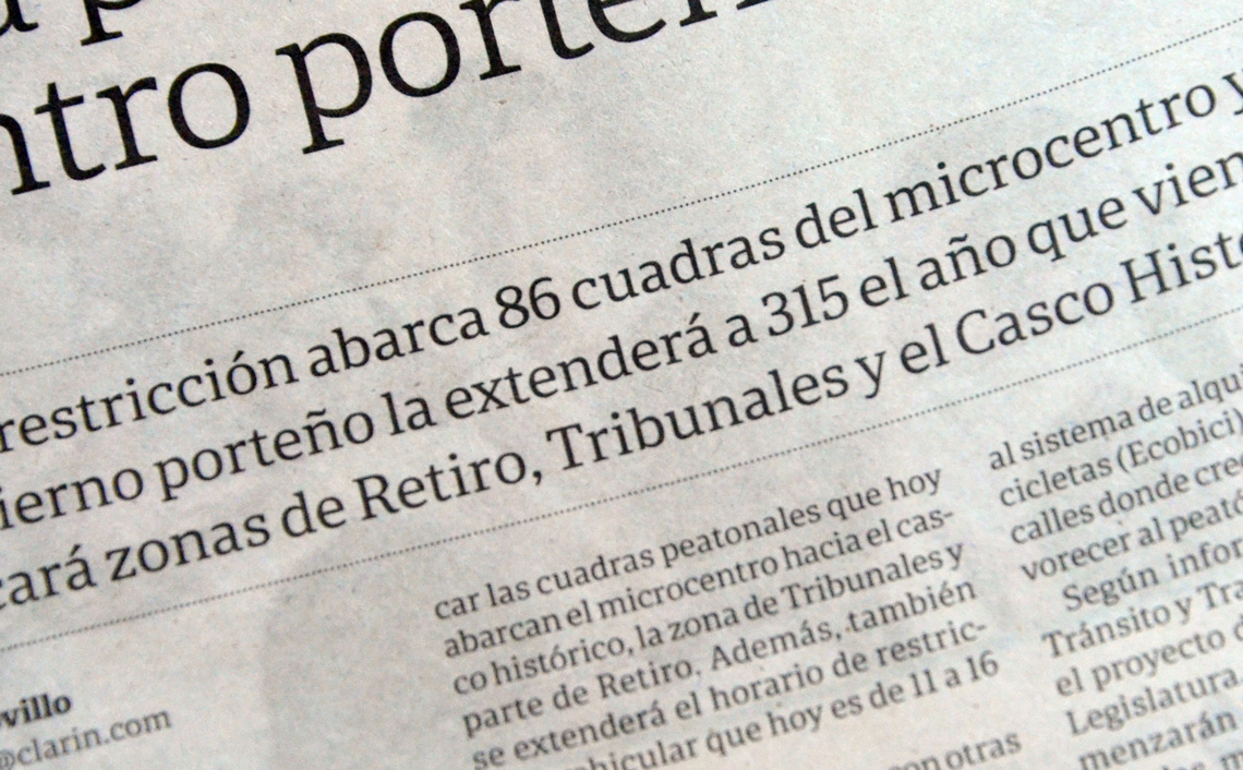 For this redesign TypeTogether was commissioned to create a new titling weight, Clarín Títulos, a companion to Adelle and Adelle Sans, the newspaper’s type families. Now, some years later, Clarín Títulos has been replaced by Portada and Portada Text, and Adelle was moved to the sports and culture secions. The newspaper decided to use Portada for all texts — the text weights in paragraphs and the titling weights in headings and subheadings.