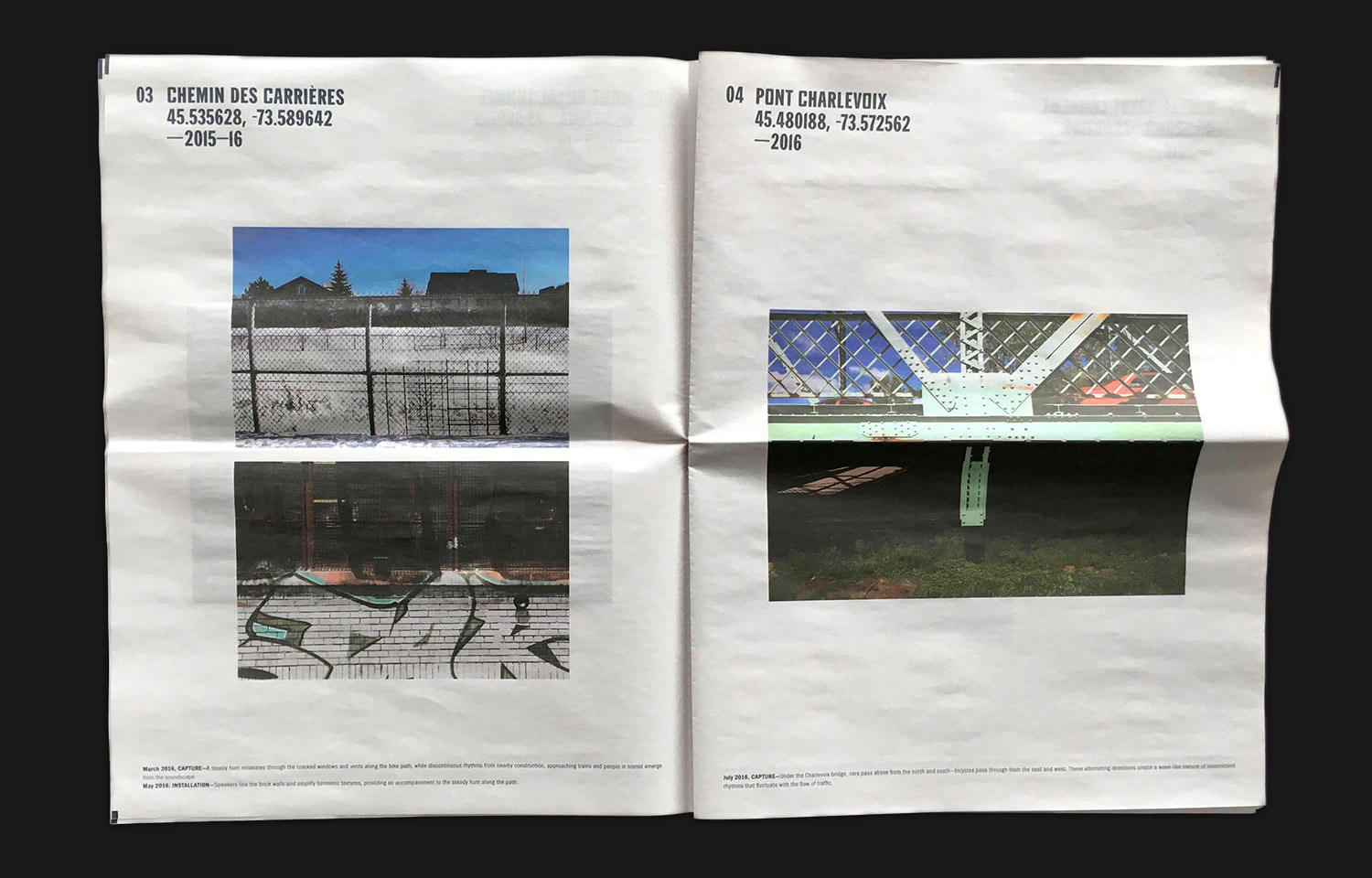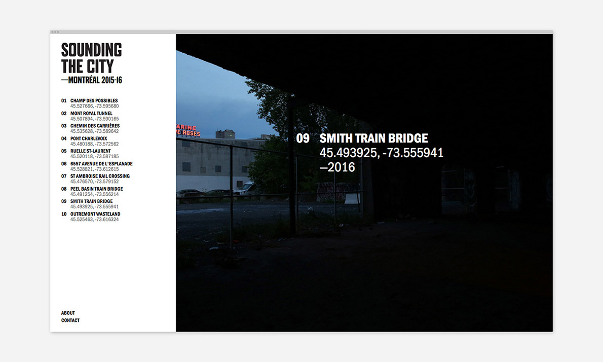 Sounding the City is an online exhibition by sound artists Jen Reimer & Max Stein dedicated to capturing urban environments and re-imagining their soundscapes through site-specific installations and acoustic interventions. The identity proudly features a pre-release of More Gothic from the Feedtype foundry.