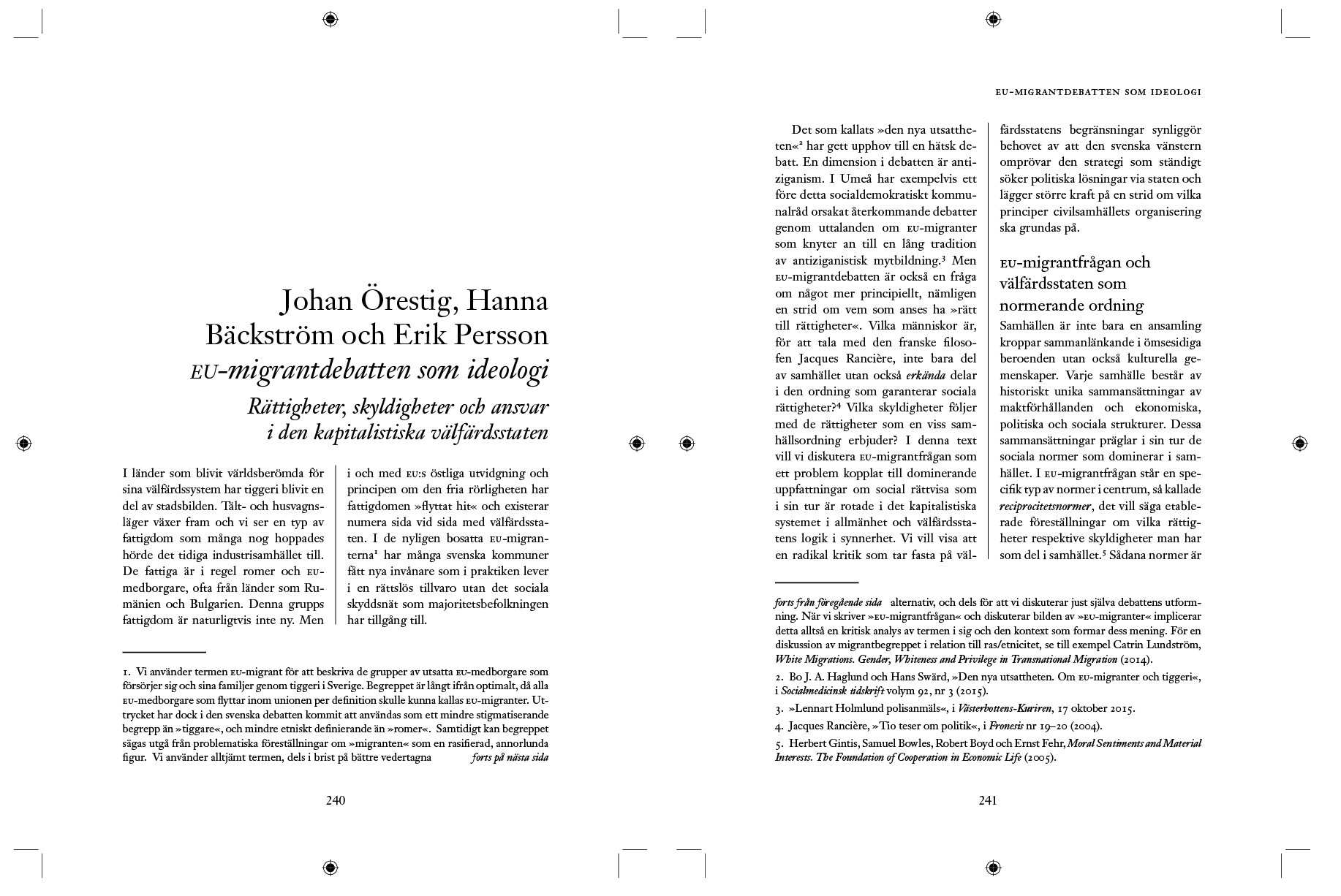 Fronesis (Swedish for “phronesis” – Greek for a type of wisdom relevant to practical action) is one of Sweden’s leading voices in critical theory. Based in Malmö and founded in 1998, they publish a quarterly magazine with texts from philosophers, activists and alike. Every issue follows a specific theme, such as “Crisis”, “Ideology” or “Movement”.