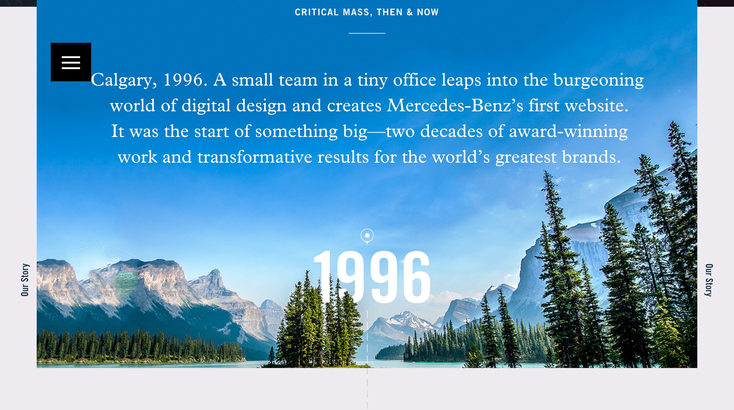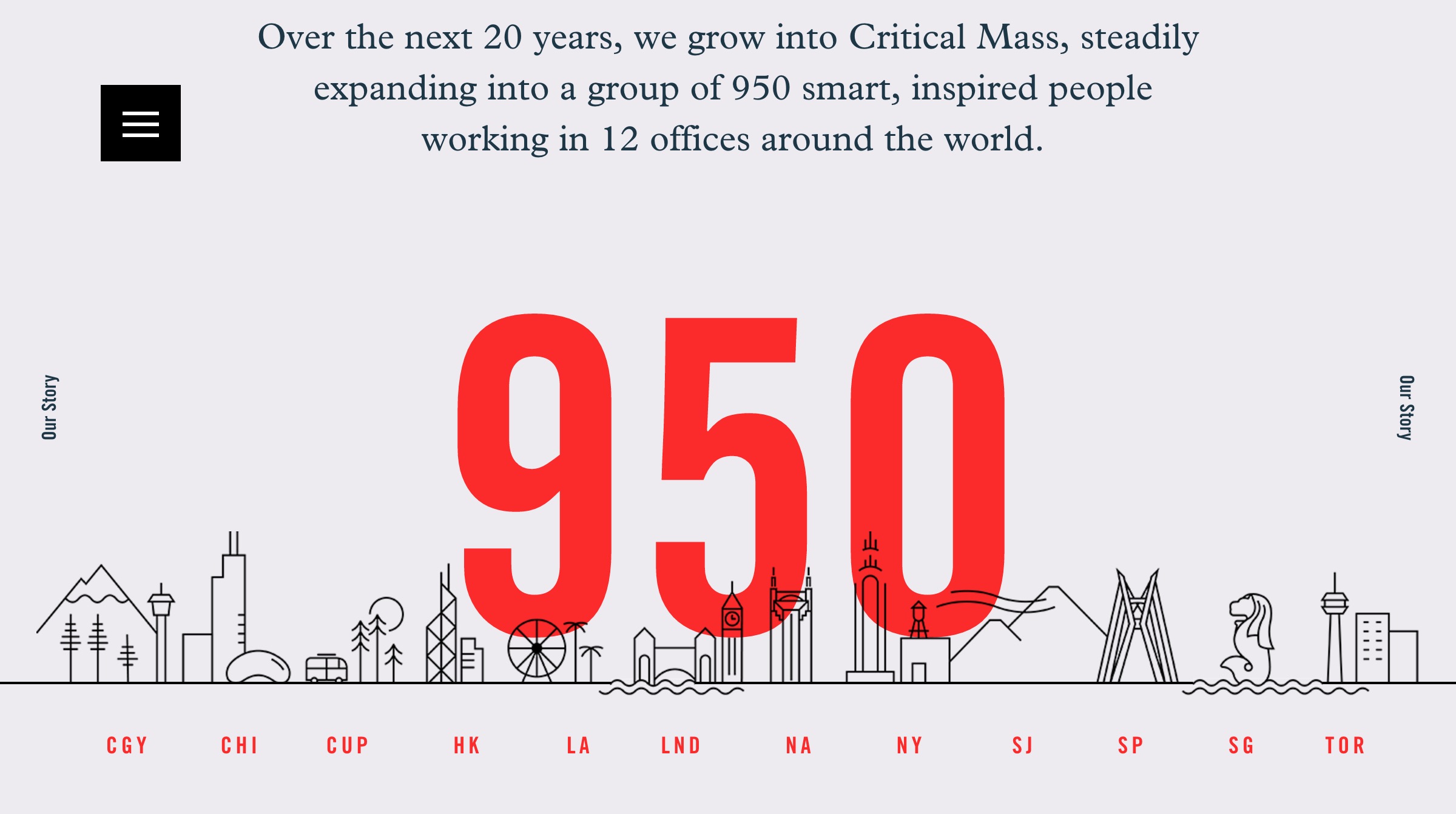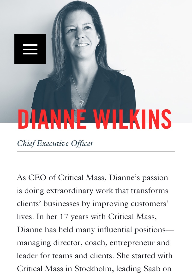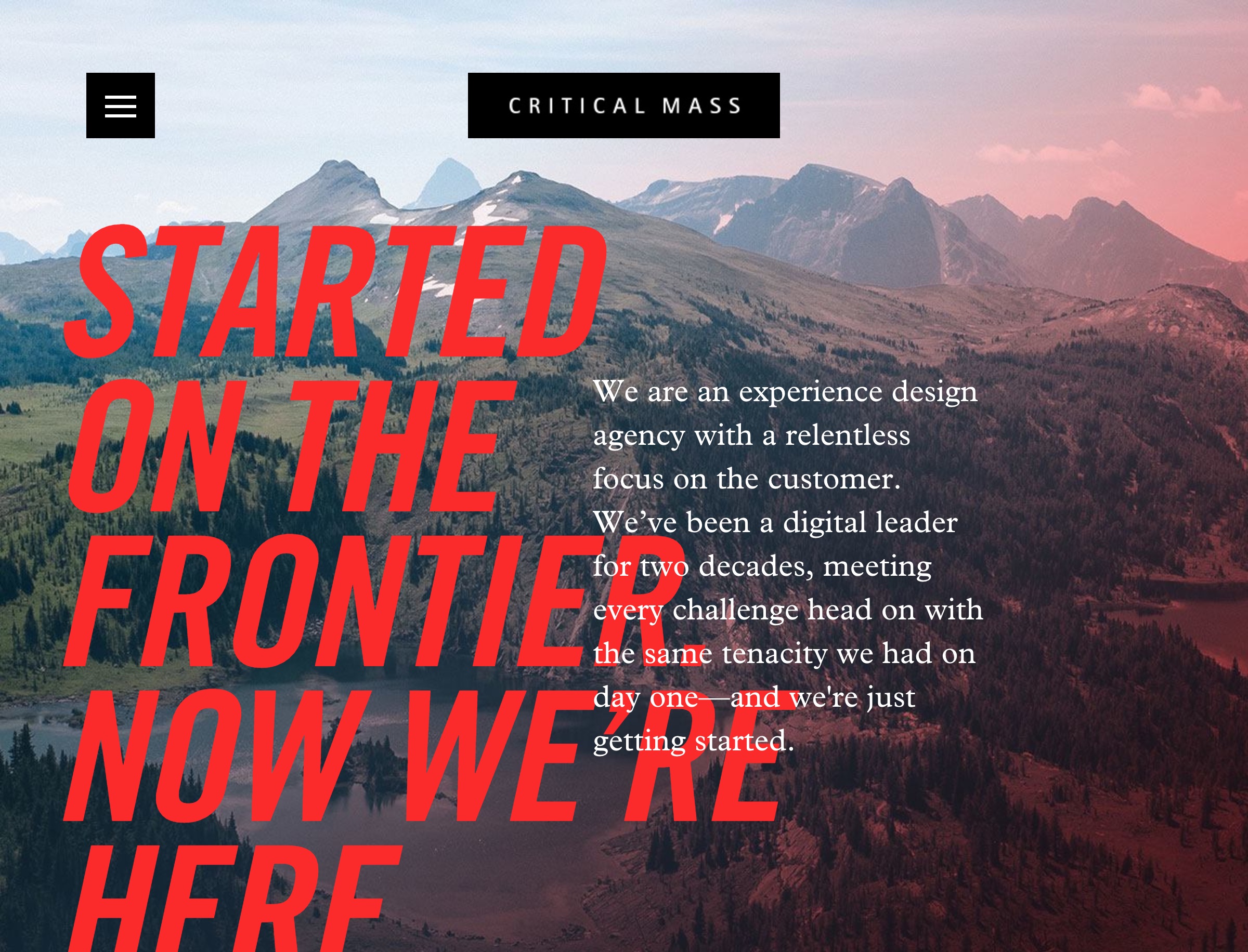 The expansive and impressively responsive website for international design agency Critical Mass is built entirely around Trade Gothic and Plantin.