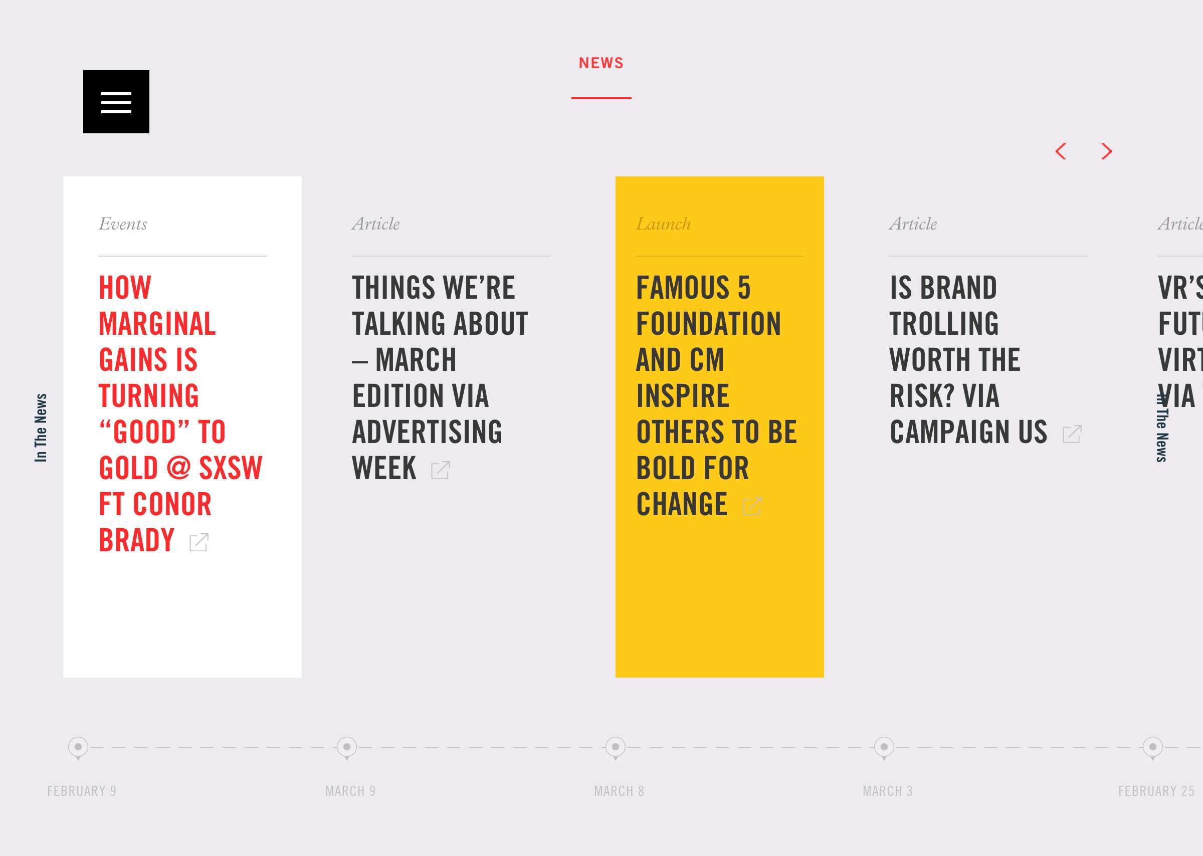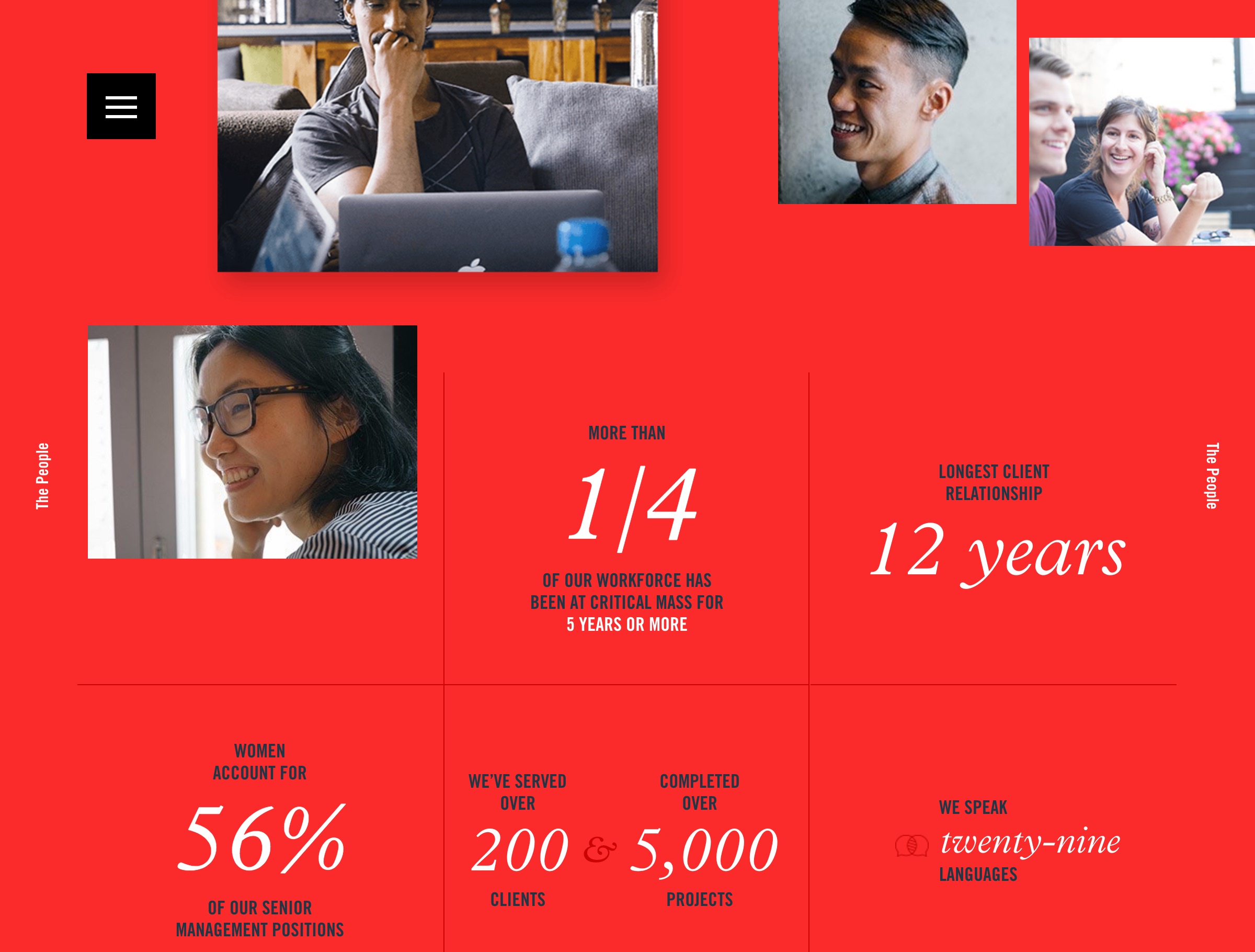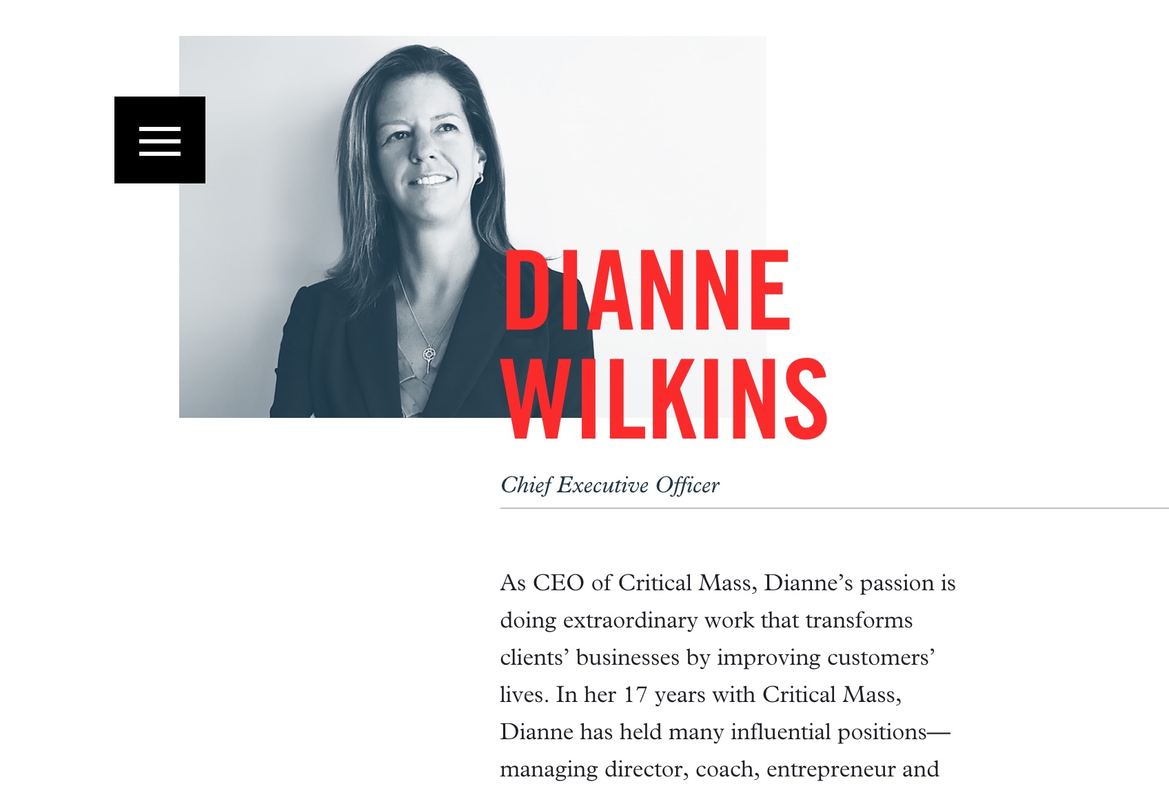 The expansive and impressively responsive website for international design agency Critical Mass is built entirely around Trade Gothic and Plantin.