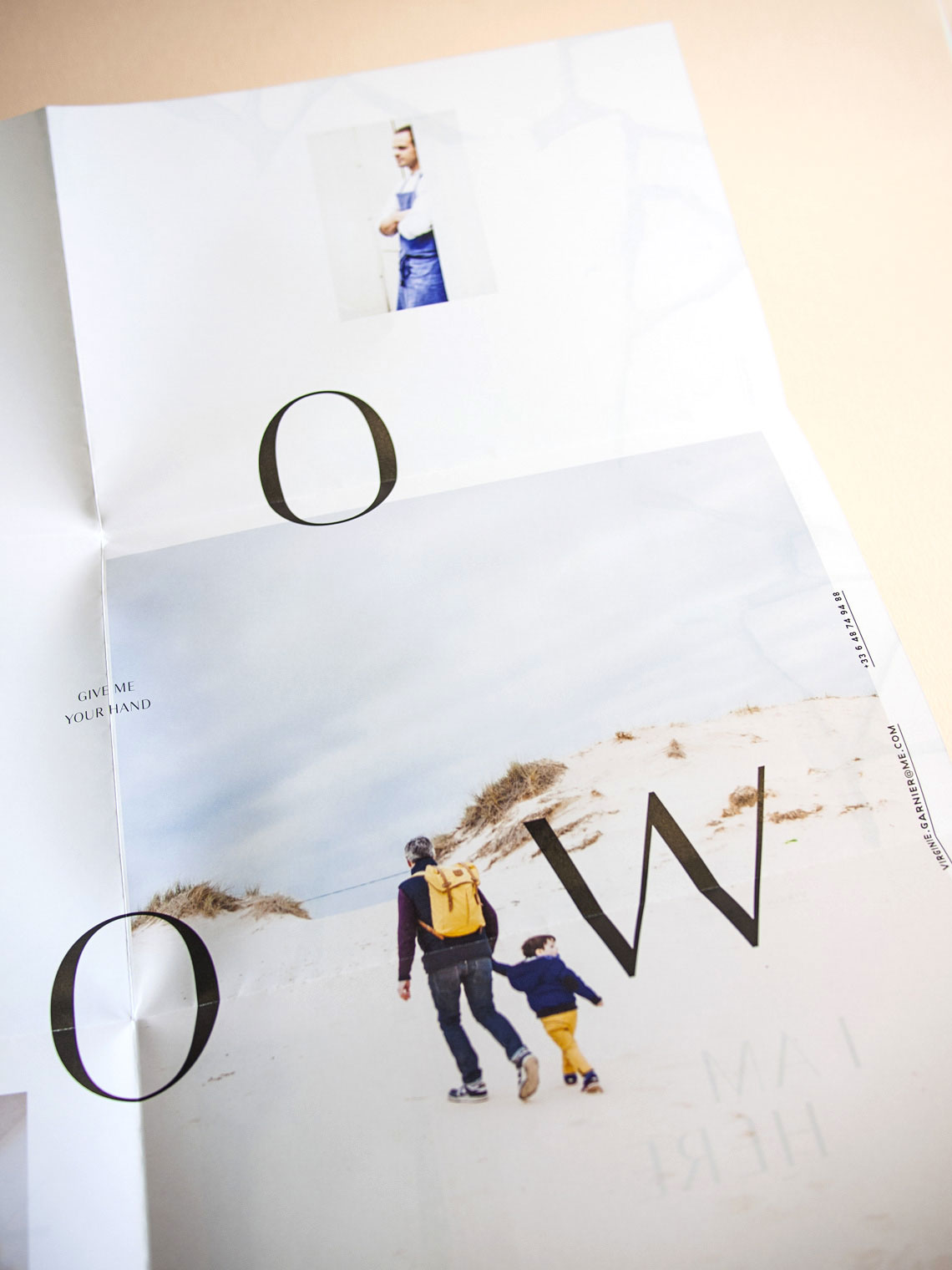 For photographer Virginie Garnier’s identity, Content Design Lab created a folded portfolio which can be transformed into a poster. Playful messages and typographical compositions are composed with all-caps Granville, on top and behind images. Pieces of information like website, email and phone number are on the sides of the format and set in GT Haptik.