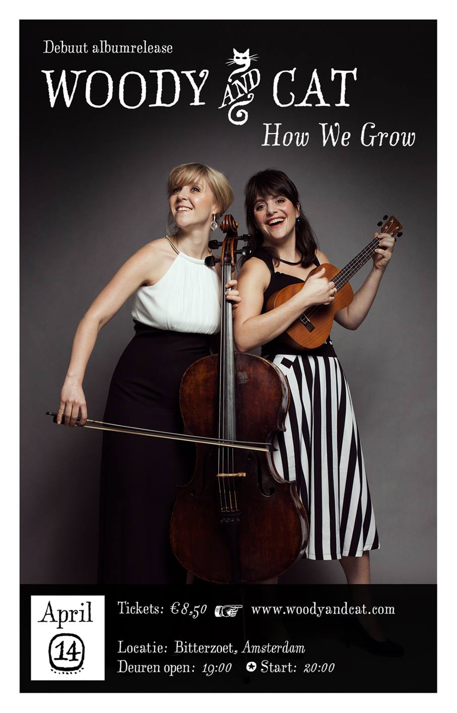 How We Grow is the debut release of Dutch singer-songwriter duo Woody & Cat. The typography for the album art designed by Tim de Groot of Studio Mittens uses LTR Salmiak. The typeface by Erik van Blokland also appears on concert posters and band merchandise.