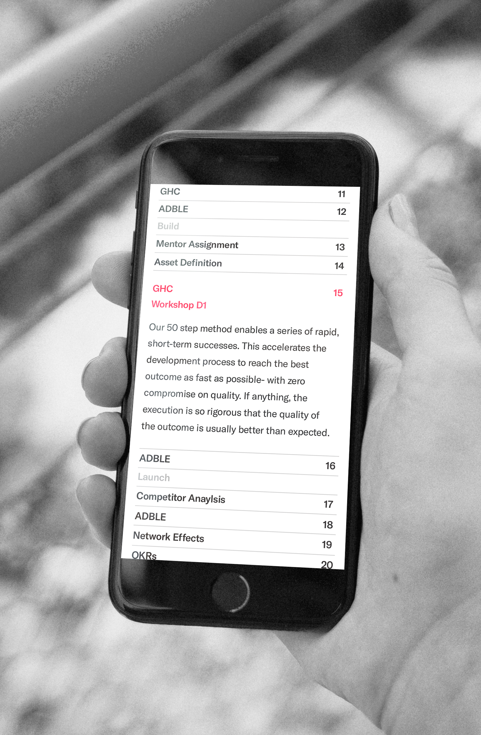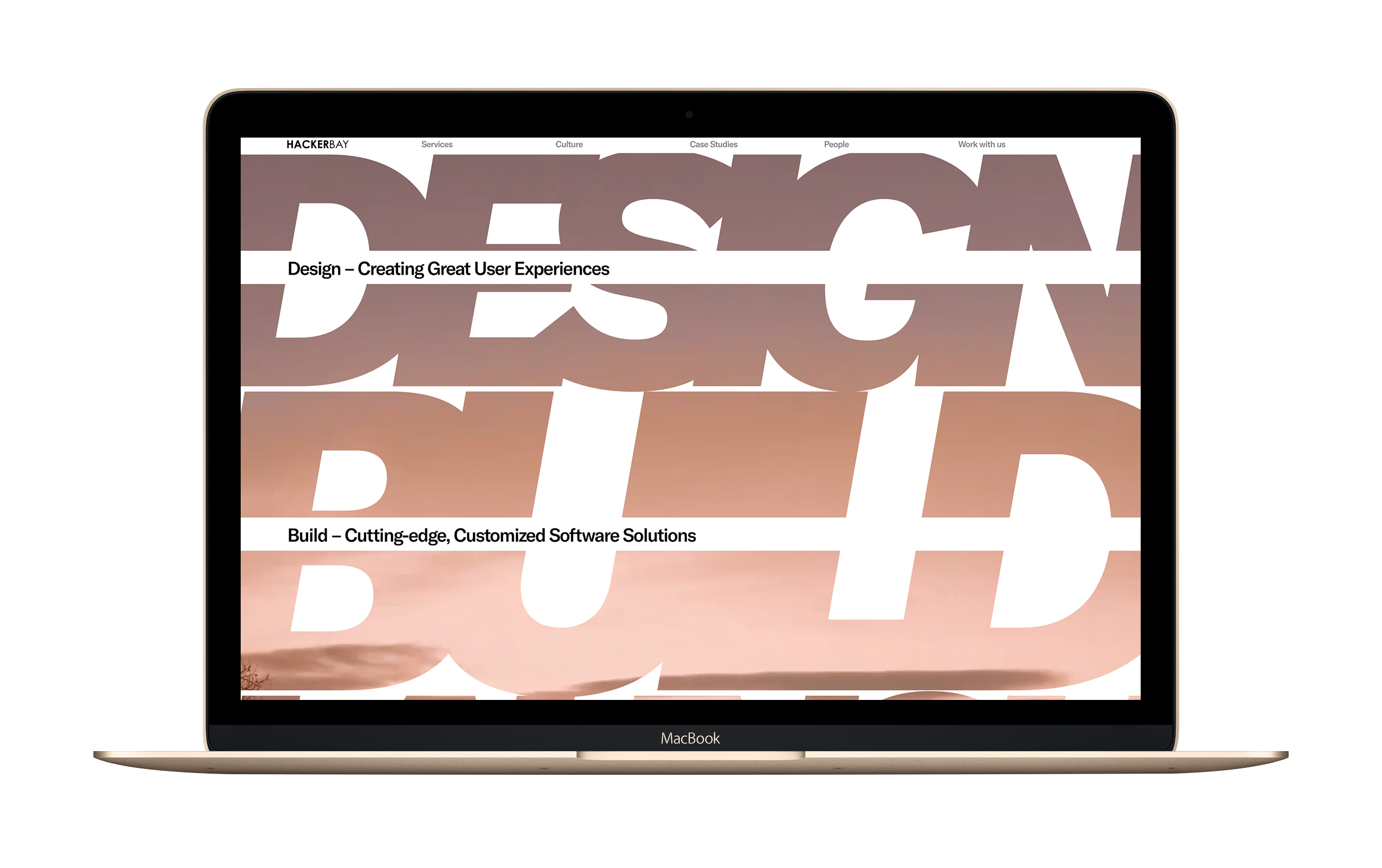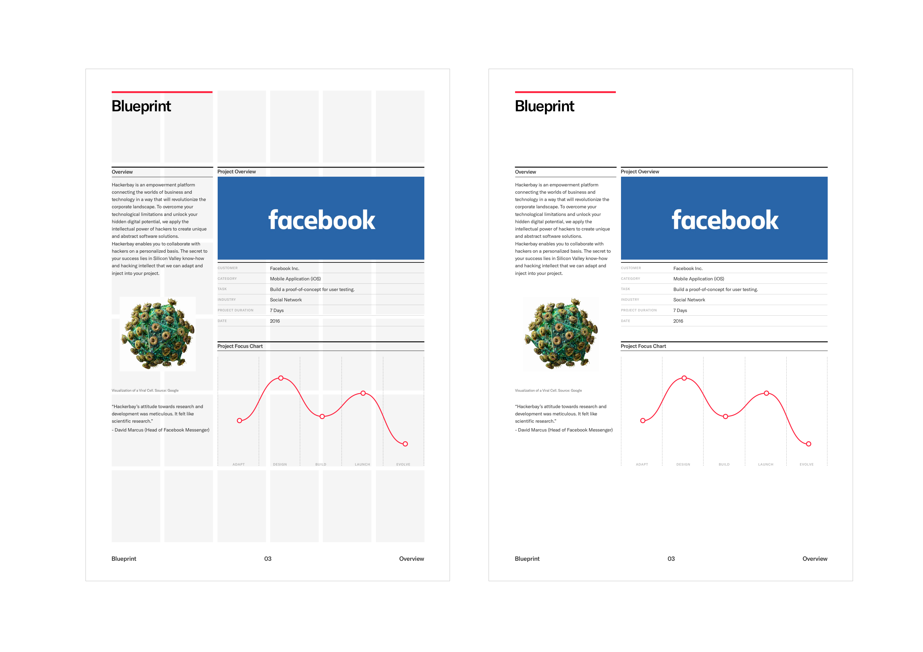The corporate typeface is GT America, an unusual choice for a tech consultant and app development company. The main “hacker type” is highly impactful, bold and unapologetic in its skeletal structure, but also acts as a “window” to other landscapes and places in the real world when digitally vectorized – almost like a portal into the dynamic, fast-paced lanscape of Hacker Culture. This portal represents the connection between the worlds of business and technology that Hackerbay is making. It is the main graphical element which anchors the layout.