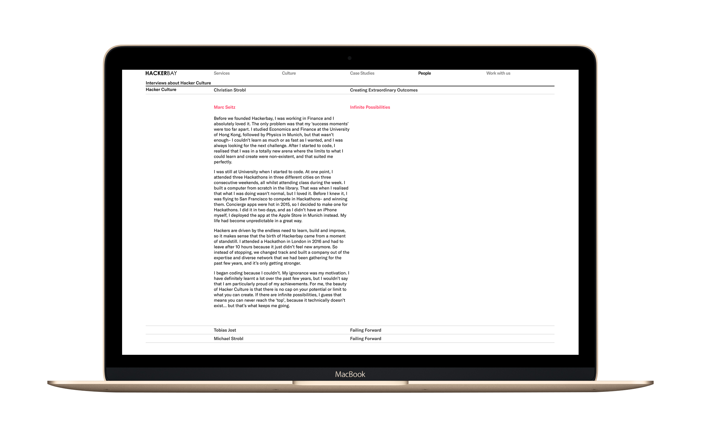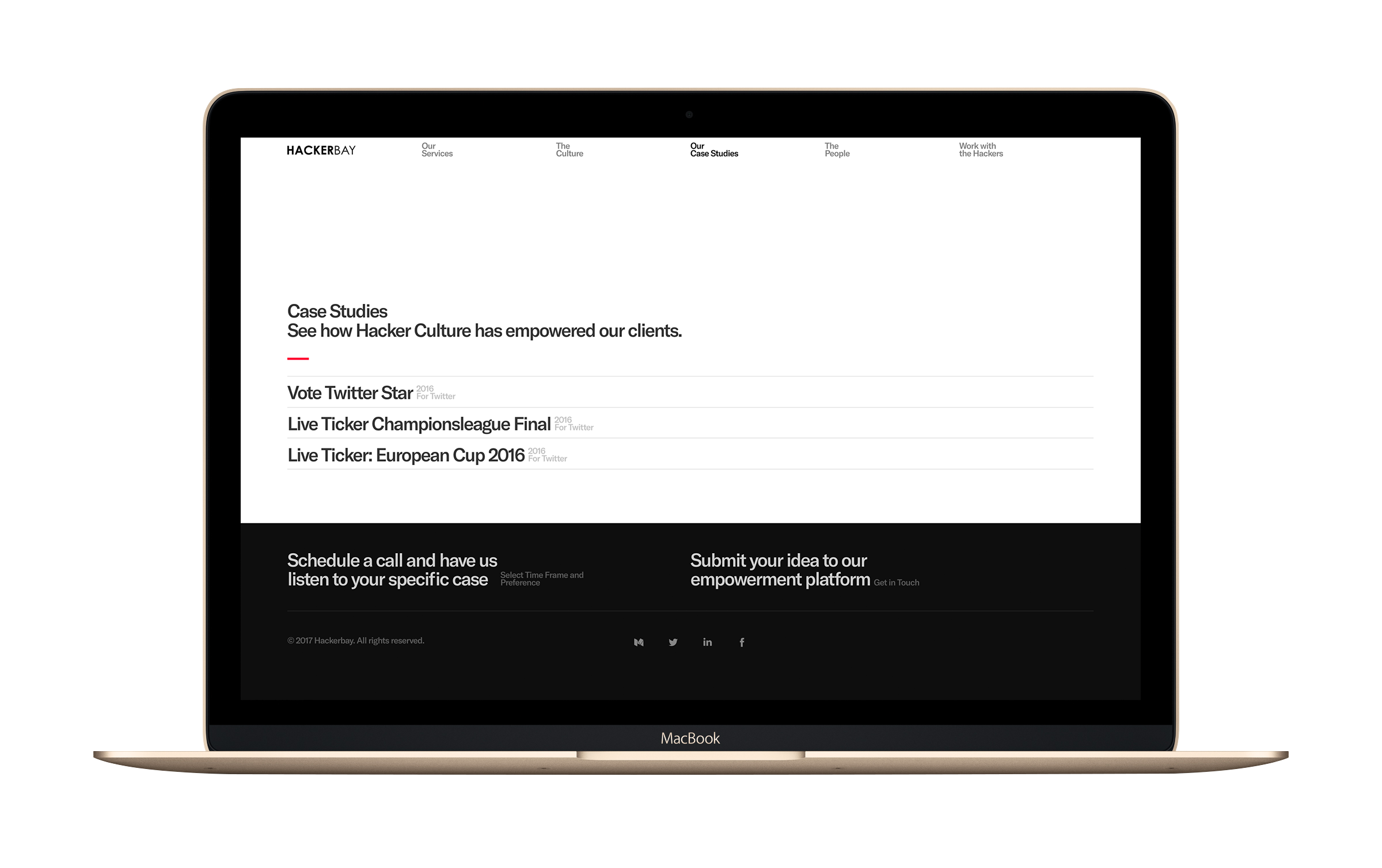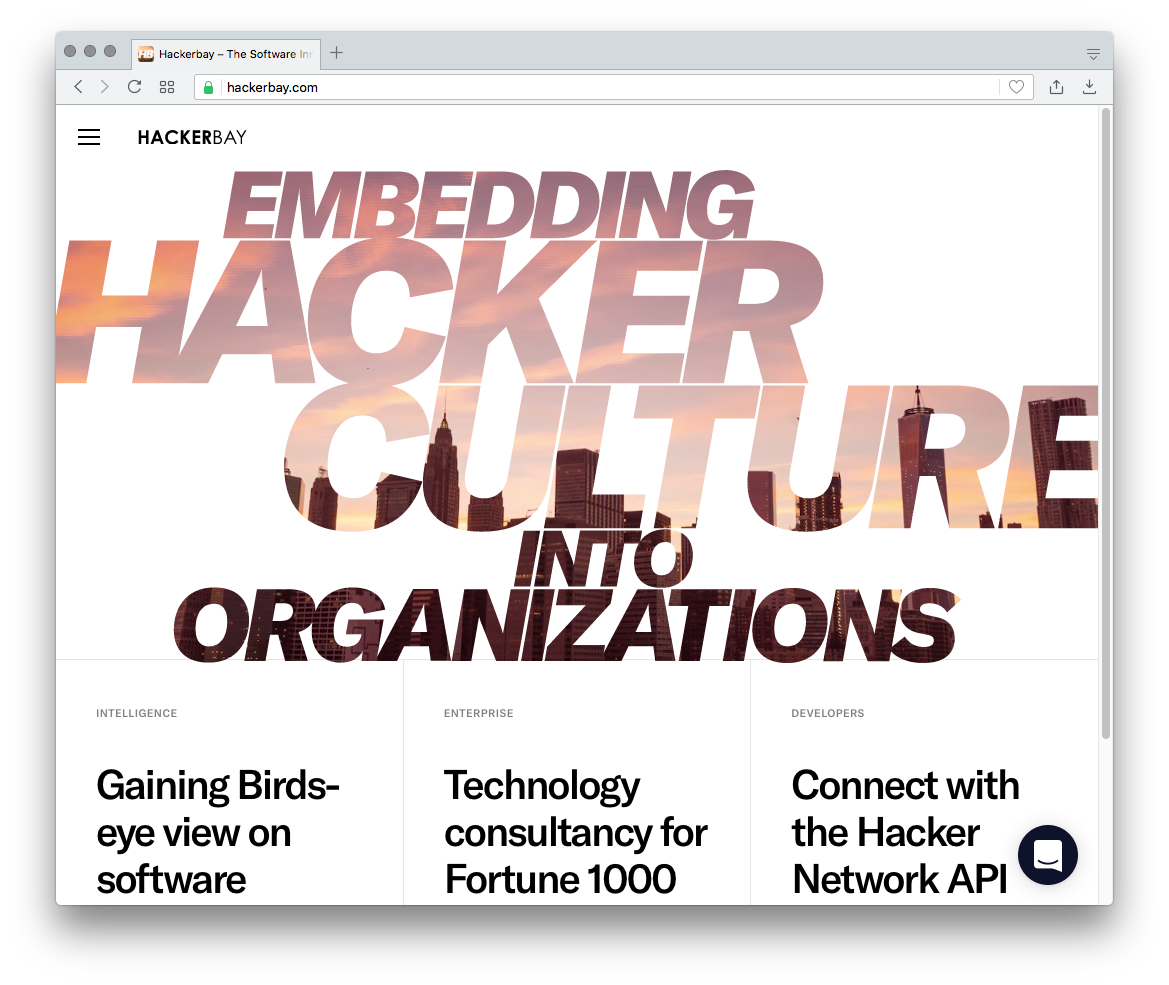Hackerbay is an invite-only network of the top digital talent, or Hackers. Our Enterprise branch provides consultancy in tech, thought leadership and education in Hacker Culture, aimed at dynamic and ambitious companies who are want to compete with the Valley giants. Technological innovation is the key to survival in the new economy.