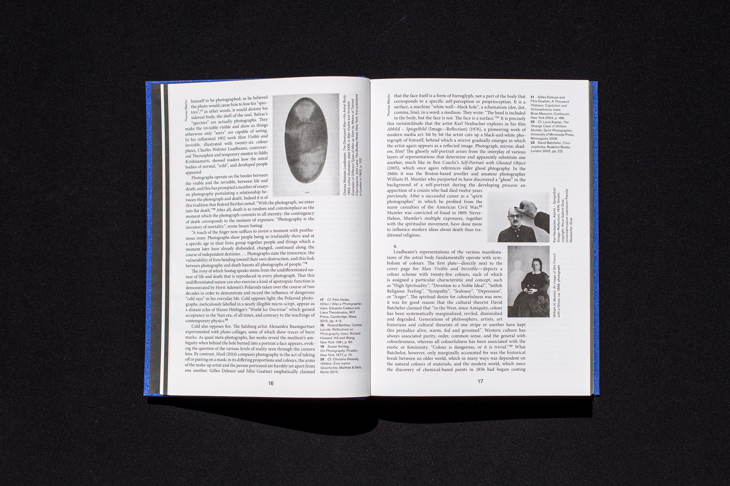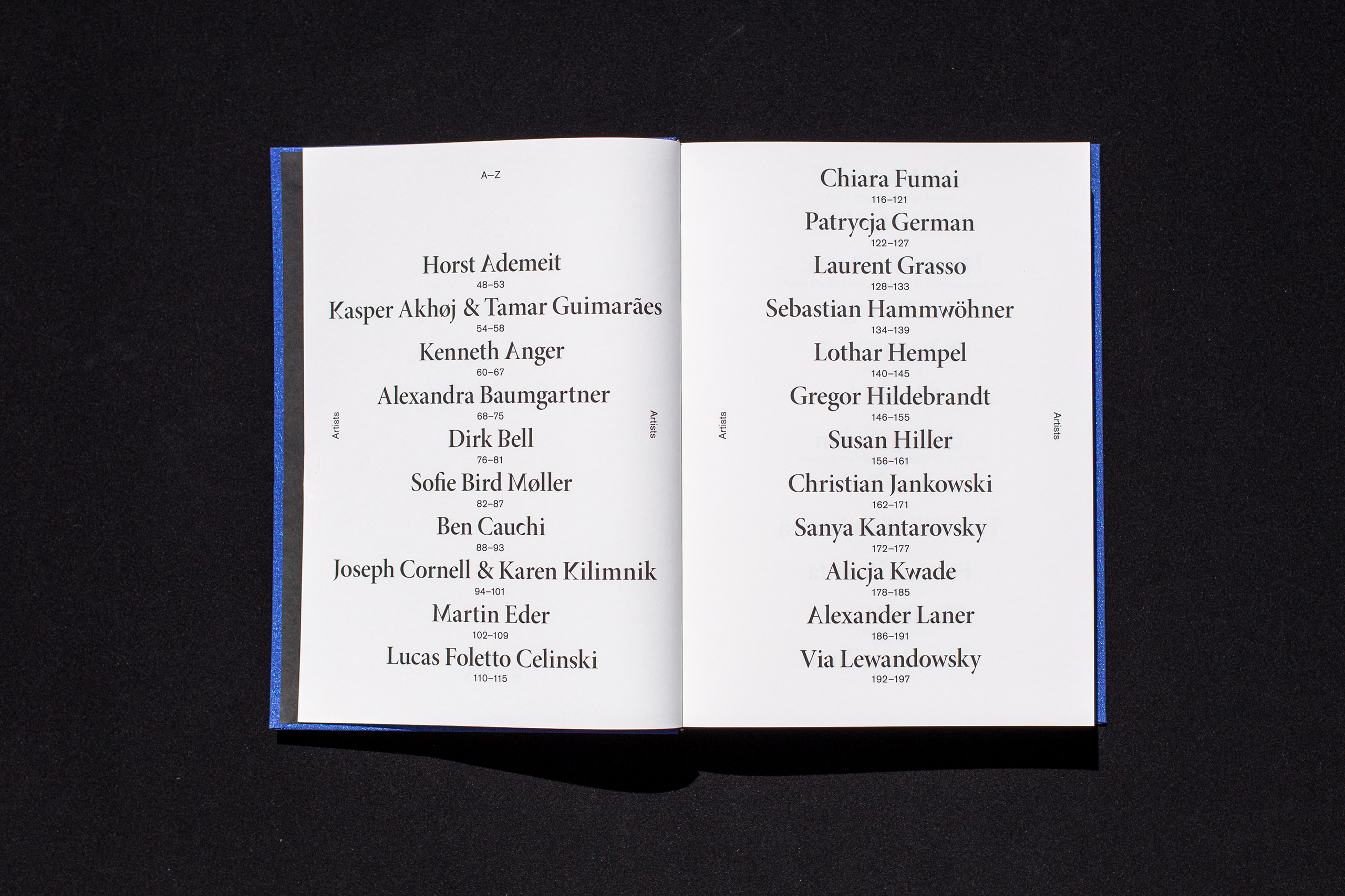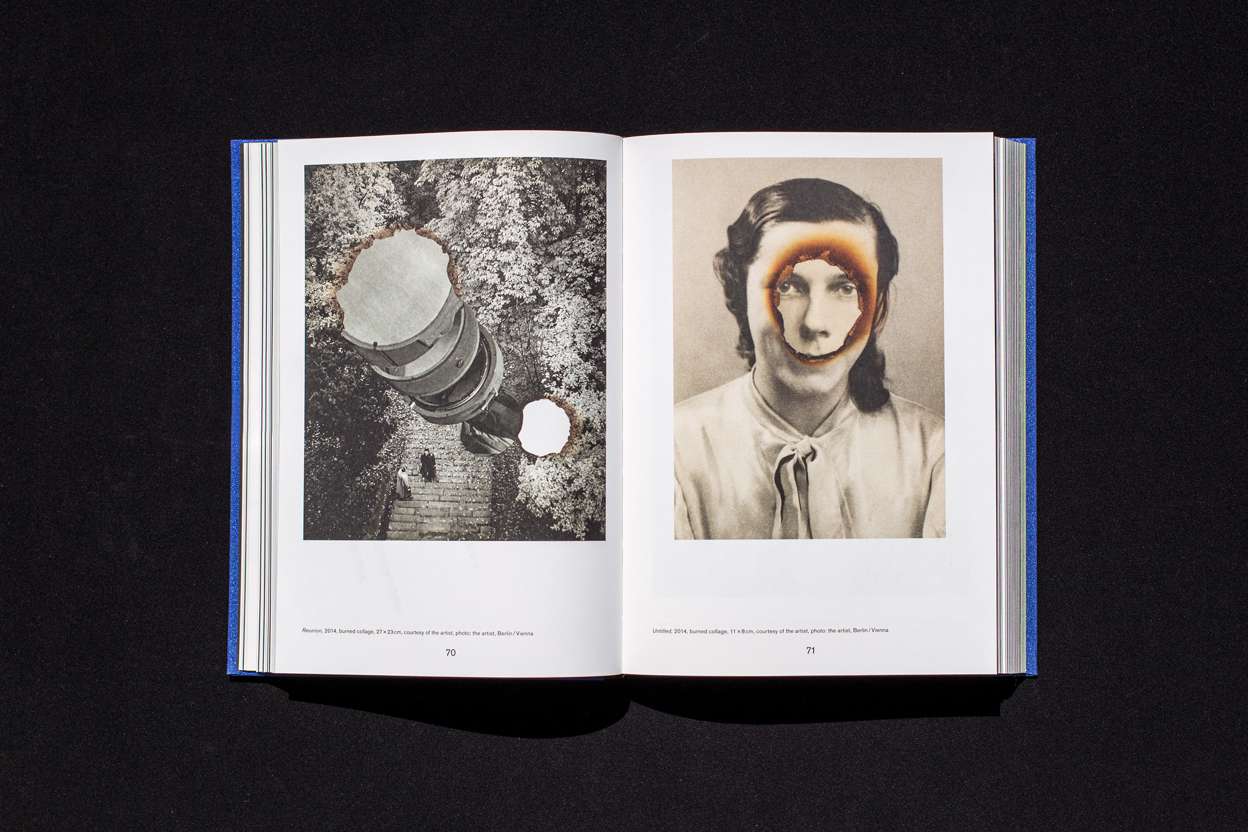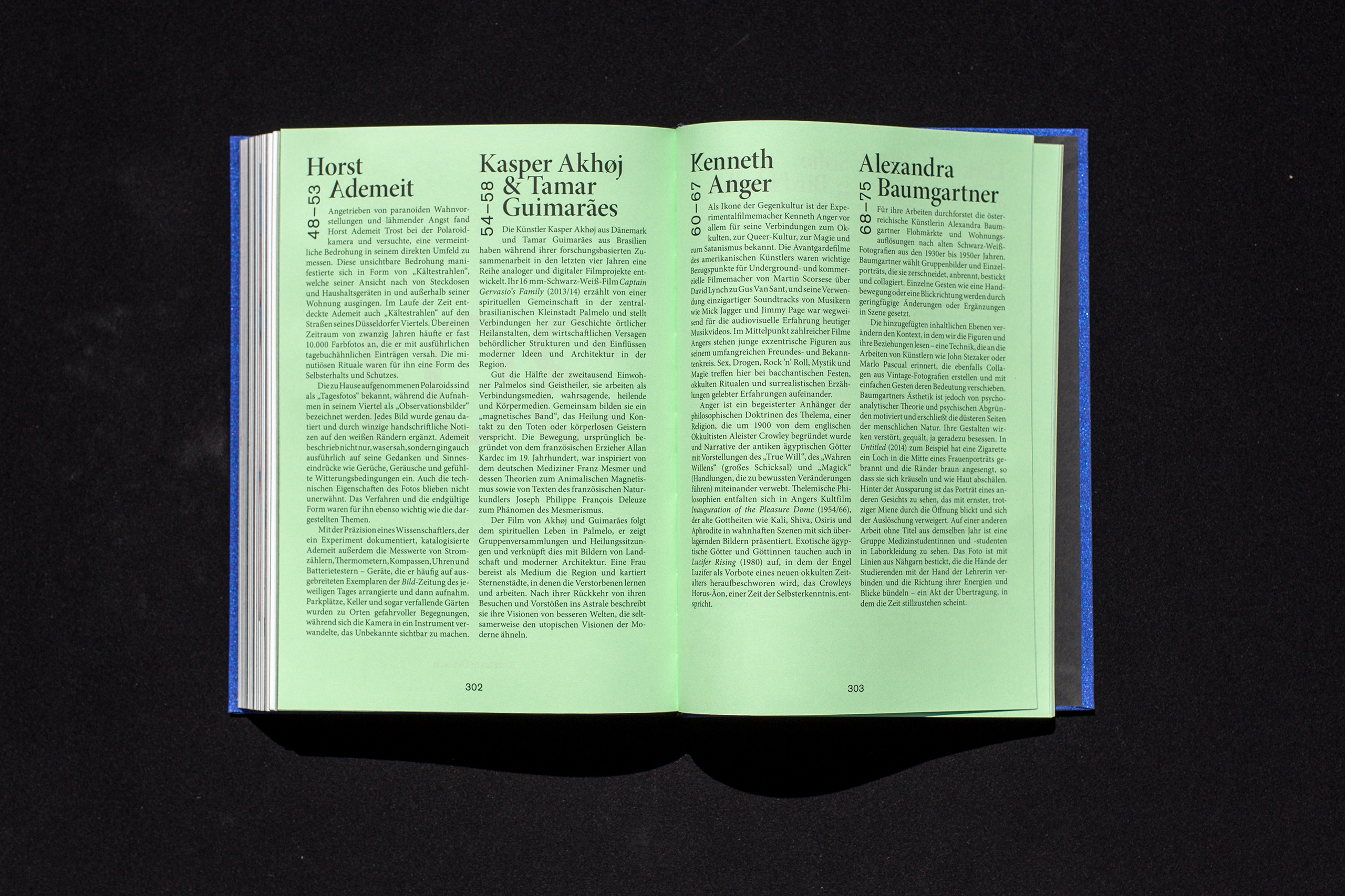 Künstlerhaus Bethanien is an international cultural center dedicated to supporting contemporary visual arts. The catalogue Astral Bodies examines the influence of esoteric practices in art. The catalogue shows work by different artists like Alicia Kwade, Christian Jankowksi and Claudia Wieser, and accompanying texts by Thomas Macho and Shubigi Rao. The design of the book refers to the topic in a very clear, still subtle way with an altered typography, a dark blue metallic book cover and a black edge finishing.