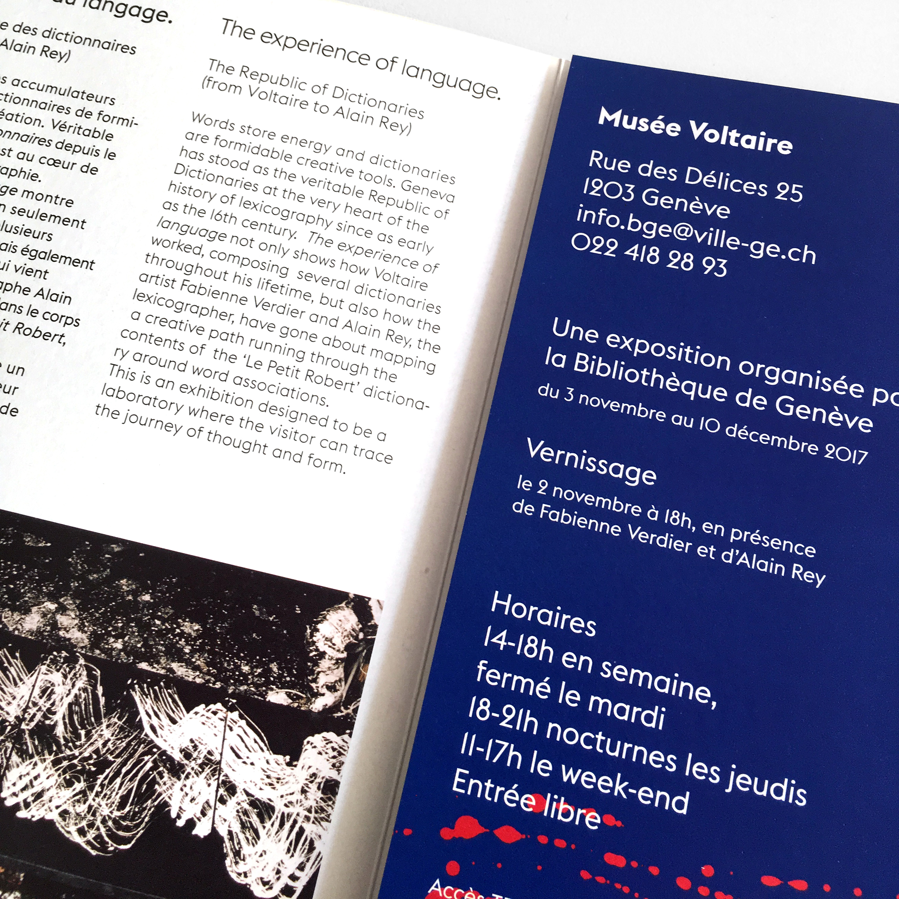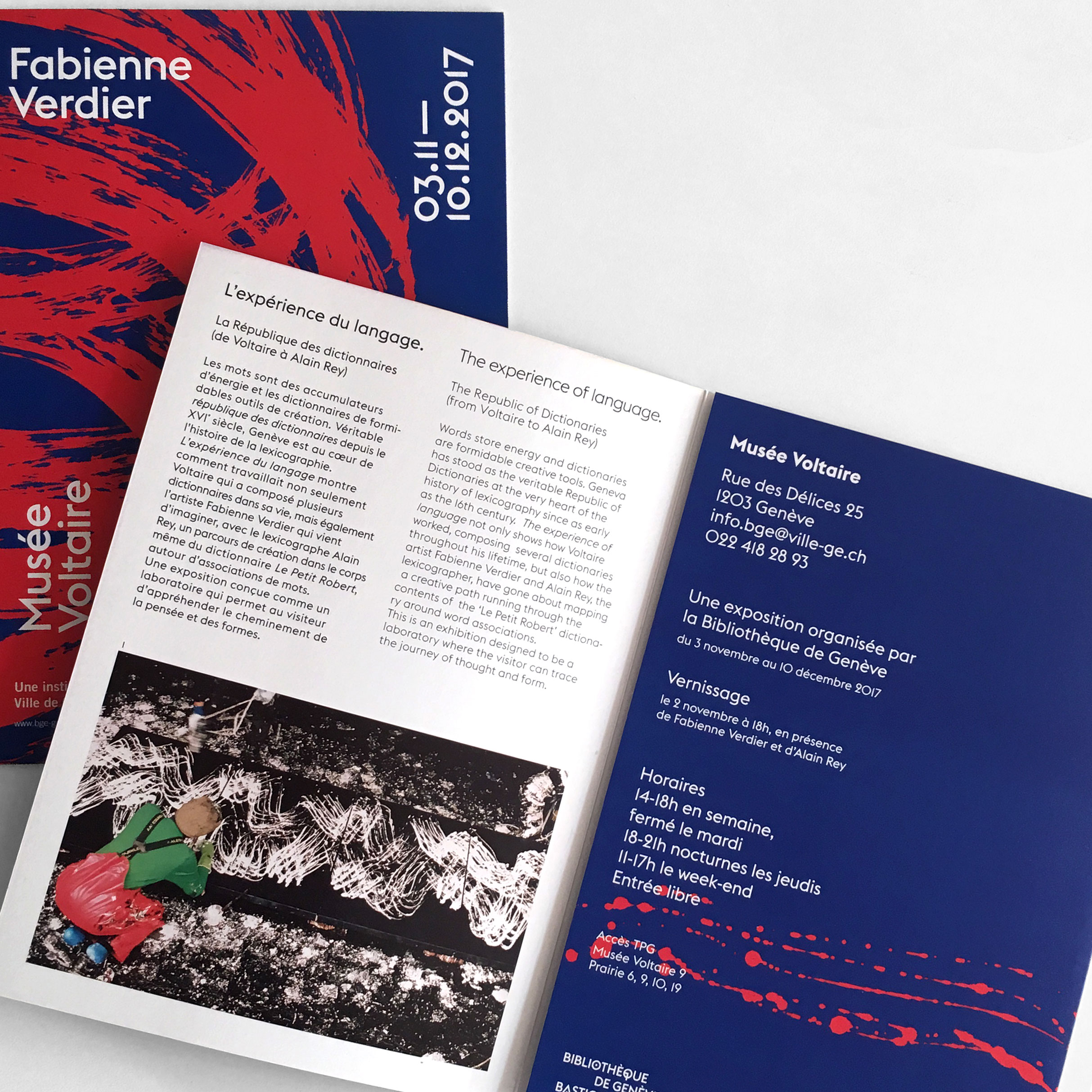 Fabienne Verdier – L’expérience du language, Musée Voltaire Contributed by Swiss Typefaces on Jan 31st, 2018. Artwork published in 2017. License: All Rights Reserved. Two of the three posters and the flyer studio Neo Neo designed for the exhibition of Fabienne Verdier at Musée Voltaire, for the Bibliothèque de Genève. Euclid Flex is part of the Euclid typeface, available from Swiss Typefaces. License: All Rights Reserved. License: All Rights Reserved. License: All Rights Reserved. License: All Rights Reserved. Typefaces More about Euclid FlexGet Euclid Flex Formats Posters/Flyers (5652) Topics Event (3147) Art (4580) Designers/Agencies Neo Neo (2) Tagged withposters (1389)museums (195)red (815)blue (893)exhibition posters (724)Musée Voltaire (1)Fabienne Verdier (1)Bibliothèque de Genève (1)red and blue (353)rotated type (2179)programs (623)multilingual (2553)French (language) (2477)English (language) (2370) Artwork location Switzerland (1099) Genève (87) In Setscool (Karo Konieczna) (871)HATI (L YH) (15) Post a comment Name Email – will not be published Website Your response Submit Comment More Euclid Flex in use Gulf Today newspaper redesign2019Pedro PereiraGulf TodayContributed by Pedro Pereira Genevalivec. 2016franz&renéContributed by Swiss Typefaces Staff Pick Chair Airlines2019BrandersContributed by Swiss Typefaces Staff Pick Sponsor More in Event Anna Niedhart & Robert Seidel – Stare at Your Scars Until the Sun of Your Eyes Makes them Grow Flowers2024Rainbow UnicornContributed by Store Norske Skriftkompani Romanticism / Thessaloniki Piano Festival 20192019George TriantafyllakosContributed by George Triantafyllakos Kilo Kish — Mothe installation and poster2018Jakob LienhardContributed by Axel Pelletanche Touch. Prints by Kiki Smith, Staatliche Graphische Sammlung München2019Buero NOCFriederike C HamannContributed by Swiss Typefaces More in Posters/Flyers Le Motet – Brahms & Mendelsohn: Lieder pour chœur et piano posterc. 2022Chris GautschiContributed by newglyph Staff Pick Amalia Keefer – Here, In My Mind exhibition2021Sasha AaronsContributed by NaN Sigmund’s Pretzels identityTriboroContributed by Stephen Coles Staff Pick Personal Theme Park2019Arnaud AubryContributed by Arnaud Aubry Staff Pick More Fonts In Use Seconde nature: pour un design durable2023Marc ArmandContributed by Formagari Staff Pick Théâtre de la Porte St Martin 21/222021Pierre JeanneauClémentine MahéContributed by Production Type Staff Pick GPO Poster: “pack parcels carefully”1955F.H.K. HenrionContributed by Stephen Coles Staff Pick Desert Daze Re+Union posters2020Aaron Lowell DentonContributed by Bryson Stohr Staff Pick
