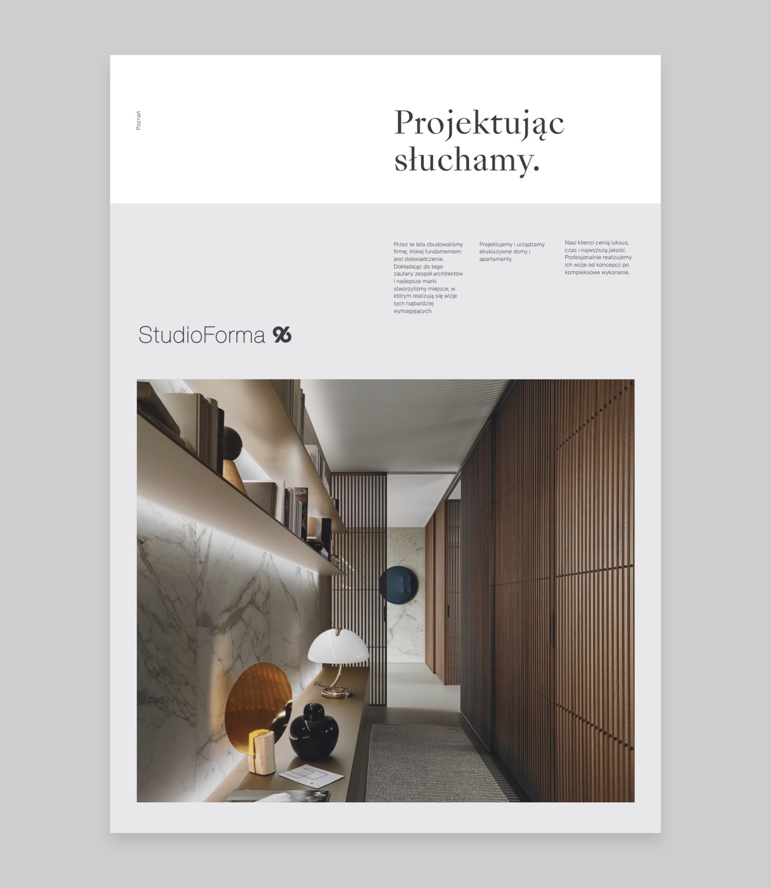 The branding of Polish furniture and interior design specialist Studio Forma 96 was designed by Uniforma, using SangBleu King and Suisse Int’l by Swiss Typefaces.