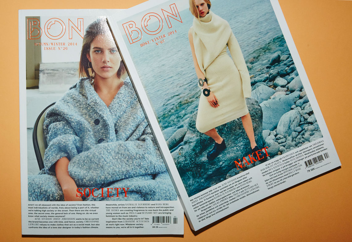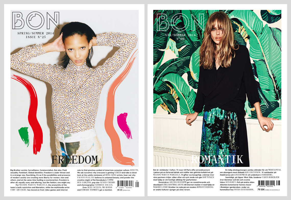 For at least seven years, the logo of Swedish fashion magazine Bon used 1970s Mecanorma typeface Garbo, as discovered by the face’s designer Gary Cooke. Bon’s cover logo was replaced in 2015 with LL Brown, but the original logo was still seen on the magazine’s spine and website.