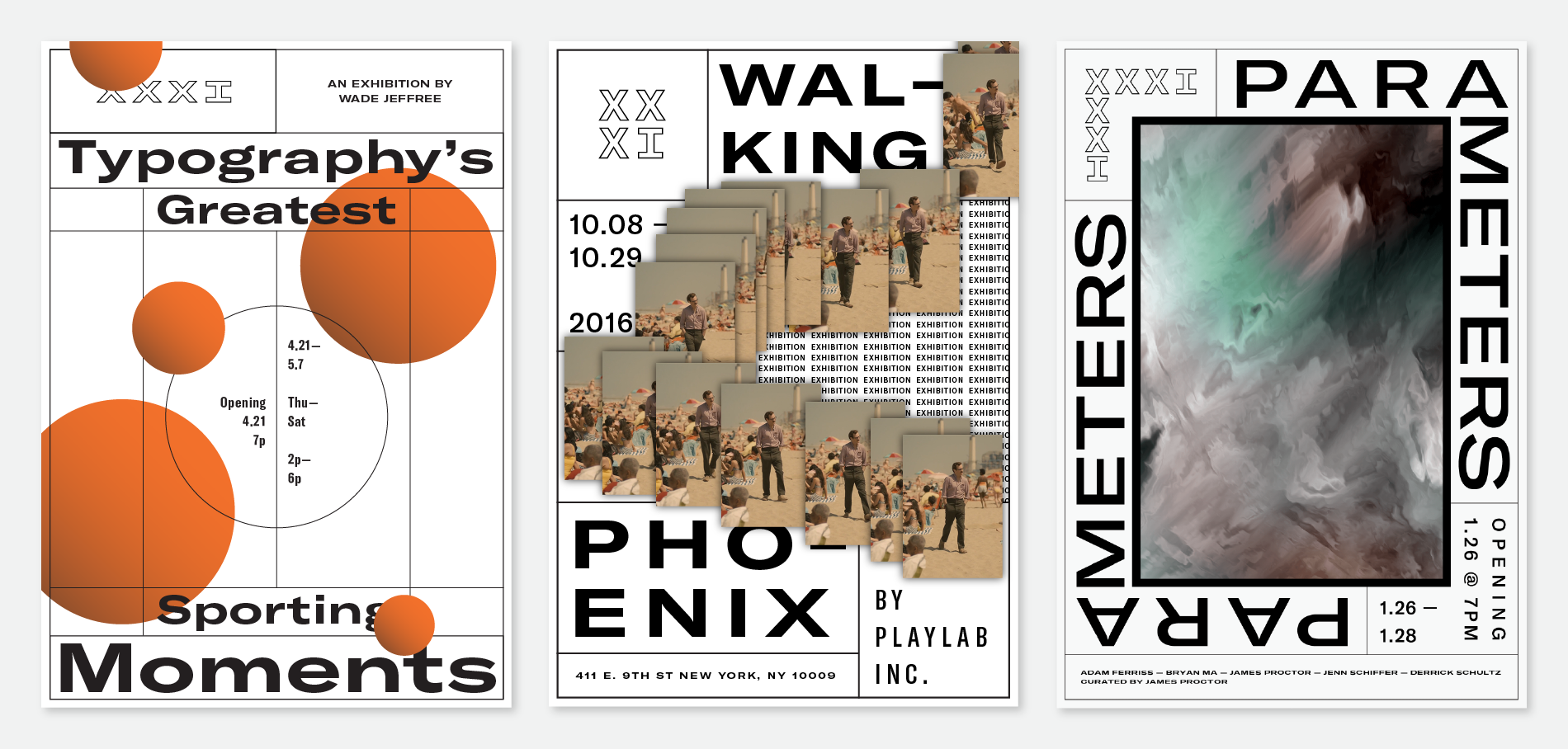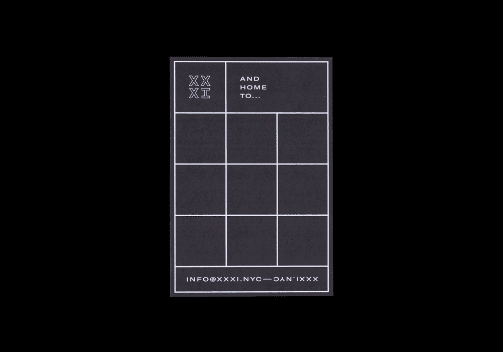 XXXI (“Thirty-One”) is a mixed-use project space, a shared studio and an online (and sometimes physical) store. Its identity is based on the space itself – the studio’s storefront serves as the grid for everything that is created. The system is flexible enough to accomodate all uses, from print to web to signage down to the modular furniture system. Grilli Type’s GT America with its versatile widths and weights was the perfect addition to this system. The width used changes depending on the container (a box, a window, a postcard, a phone, etc), which makes any environment into a responsive type system.