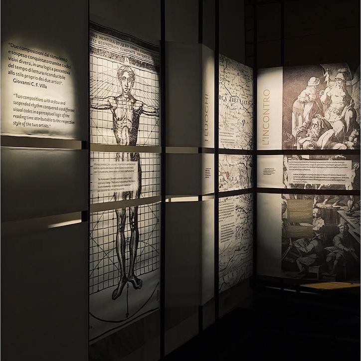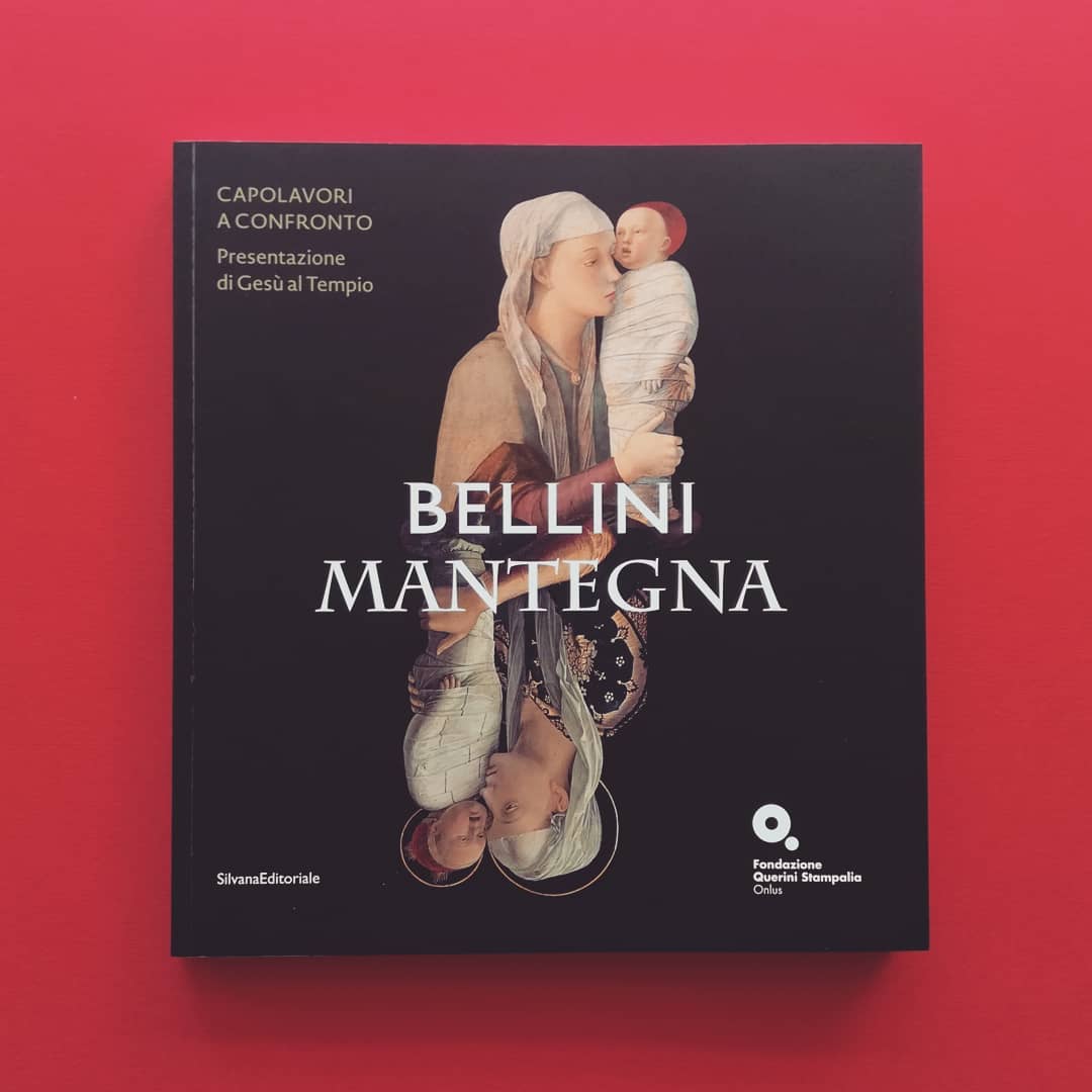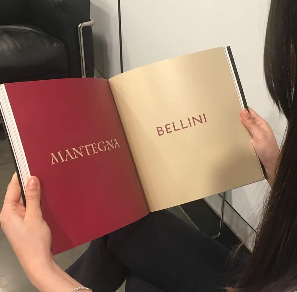 The design process was characterized by concepts such as comparison and mirroring. The two artists are represented in a balanced way, communicating at the same time the stylistic differences. The mirrored construction allows reading the image in two ways. The logotype is based on two typefaces derived from Roman capitals (used by both artists within their works), opting for a more graceful style for Mantegna and a more linear style for Bellini. This choice is derived from the comparison of the two works, where Mantegna’s gives greater sacredness to the figures, embellishing them with haloes and decorations, while Bellini’s places the characters in a more familiar and human dimension. [paraphrased from the Italian press text]